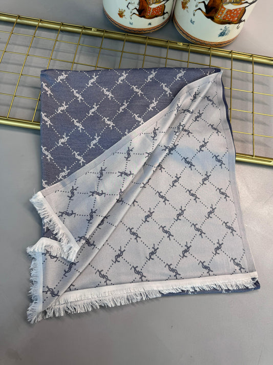 Ysl Desen Kendinden Dokulu Desenli İtalyan Şal-10010-Kot mavi