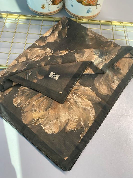 Rosaline Desen Pamuk İpek Şal-13000-Karamel