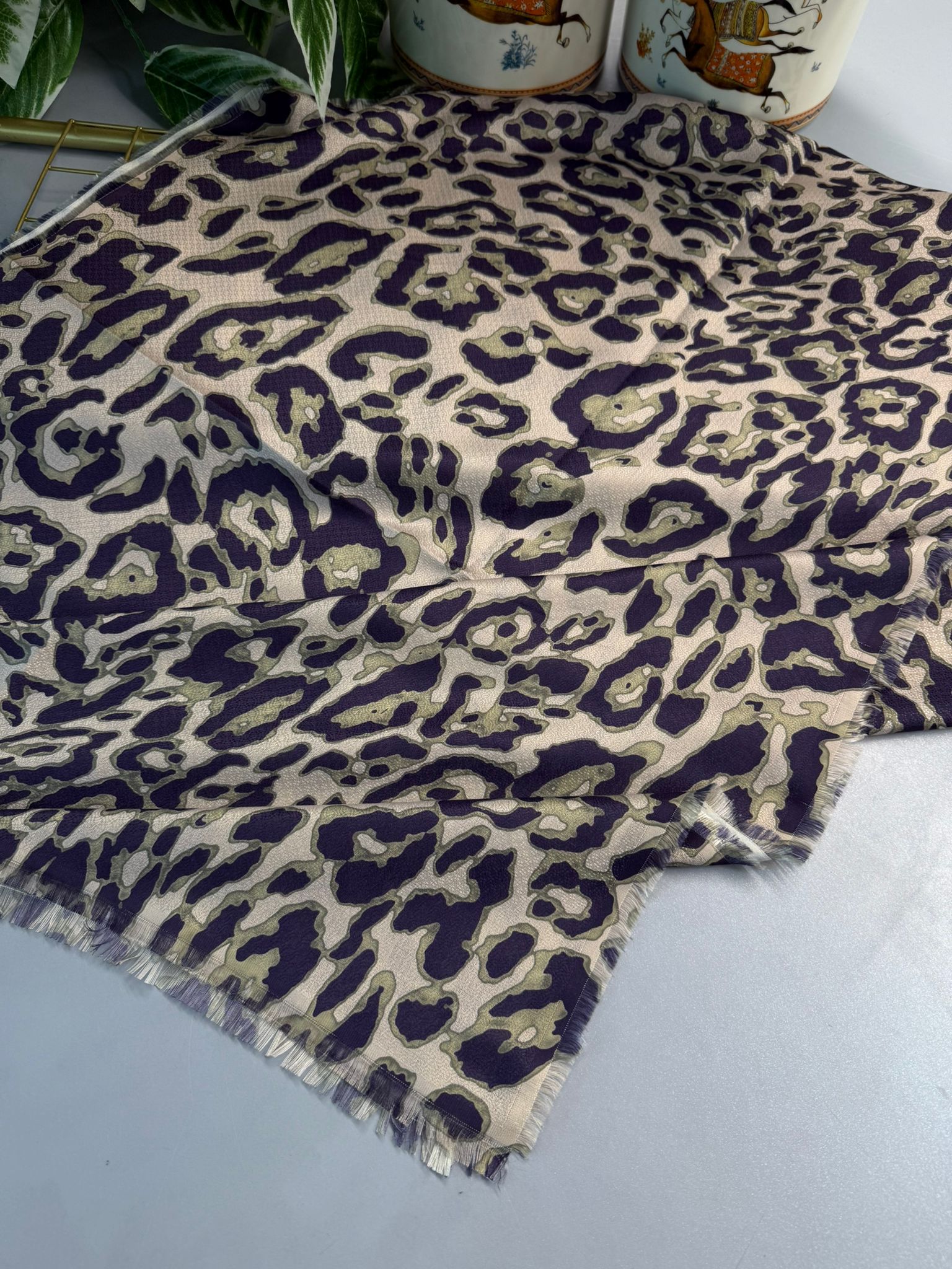Ala Leopar Desen Naturel Pamuk Şal