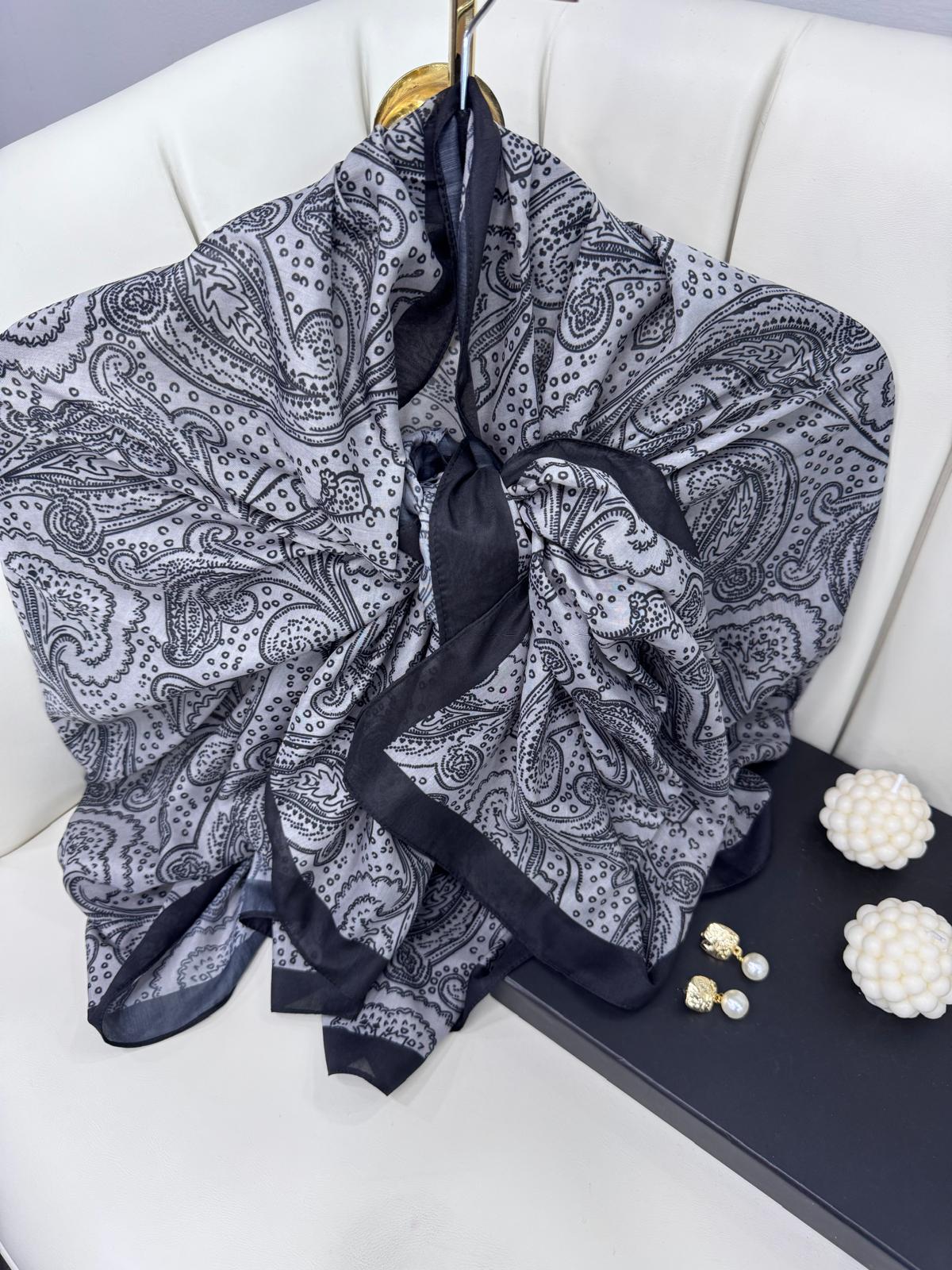 Asil Desen Pamuk İpeksi Şal -452103- Siyah Gölgesi