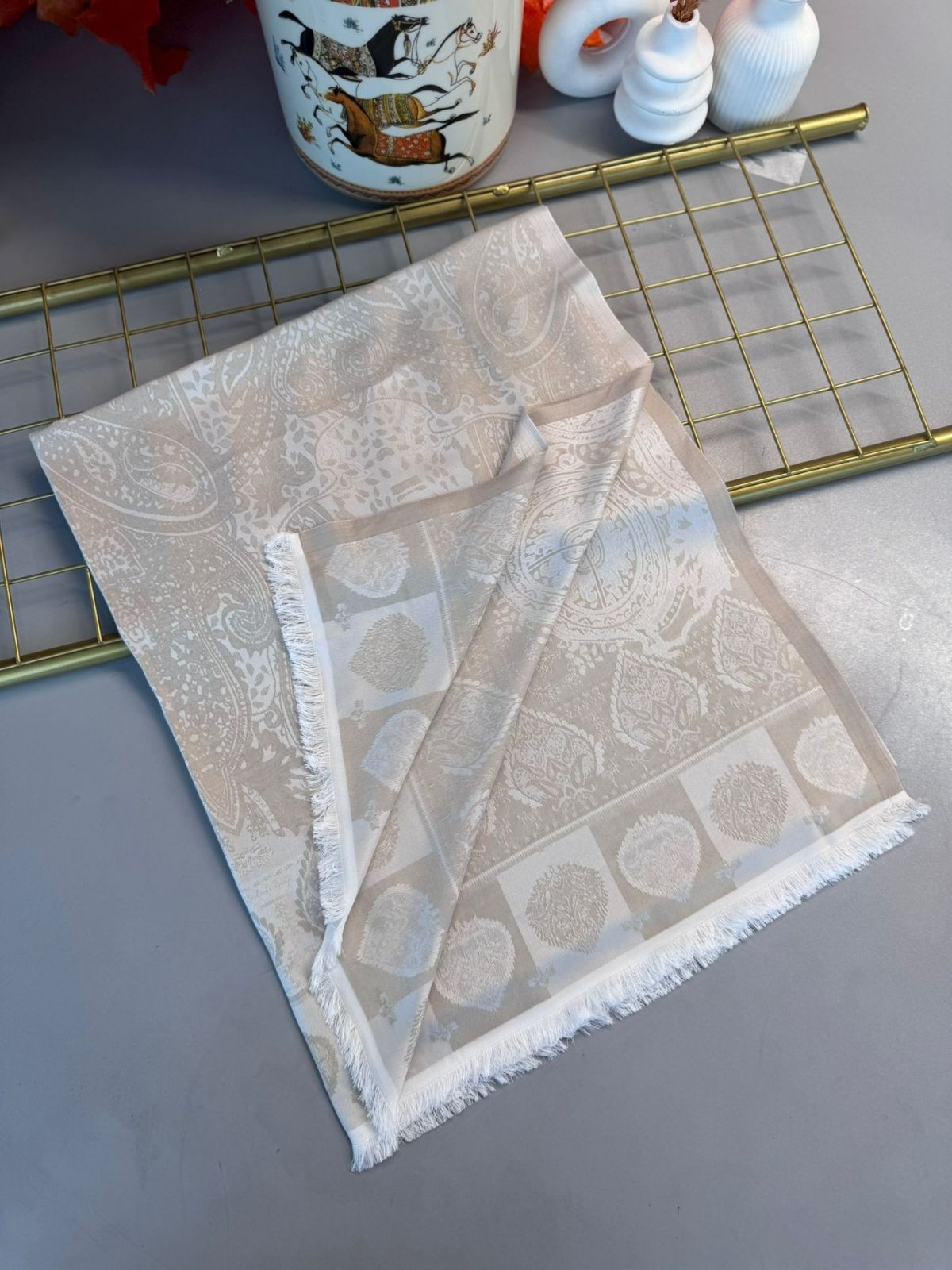 Bella Kendinden Dokulu Çift Taraflı İpek Şal - 4598 -Taş