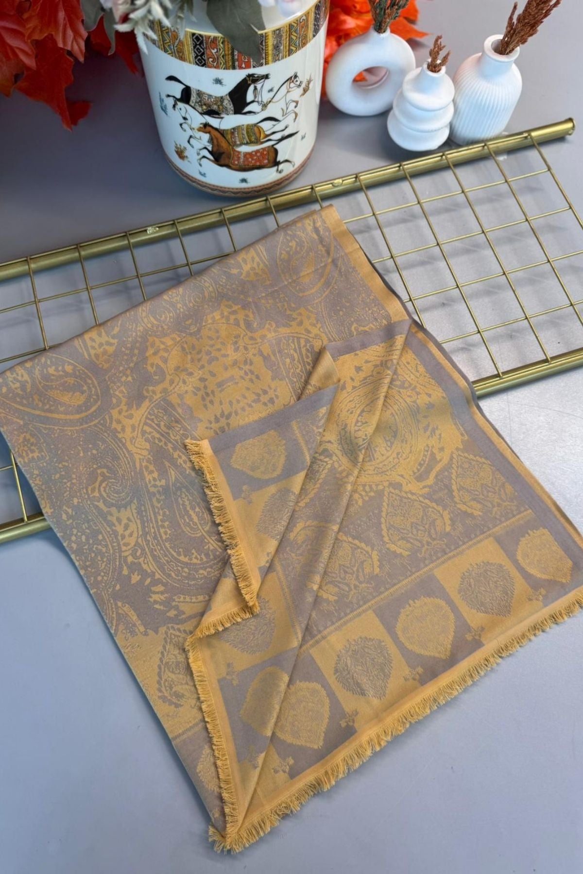 Bella Kendinden Dokulu Çift Taraflı İpek Şal - 4598 - Latte