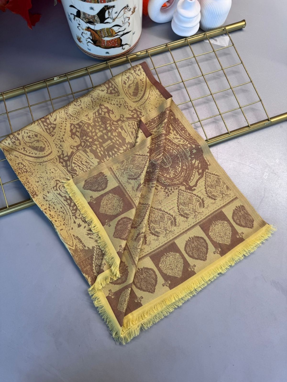 Bella Kendinden Dokulu Çift Taraflı İpek Şal - 4598 - Mocha