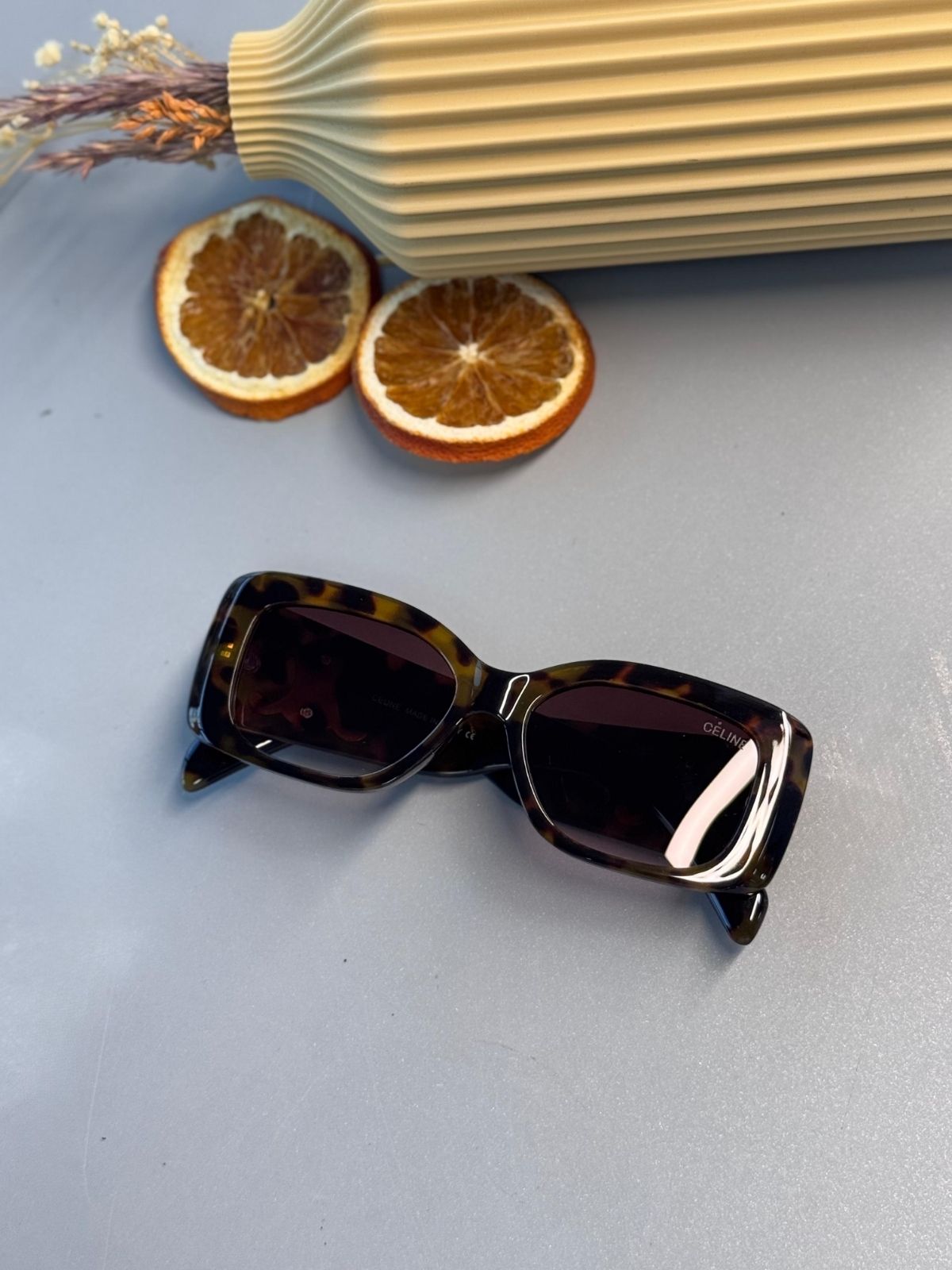 Celine Triomphe XL 01 CL - Dikdörtgen Güneş Gözlüğü - Leopar Kahve