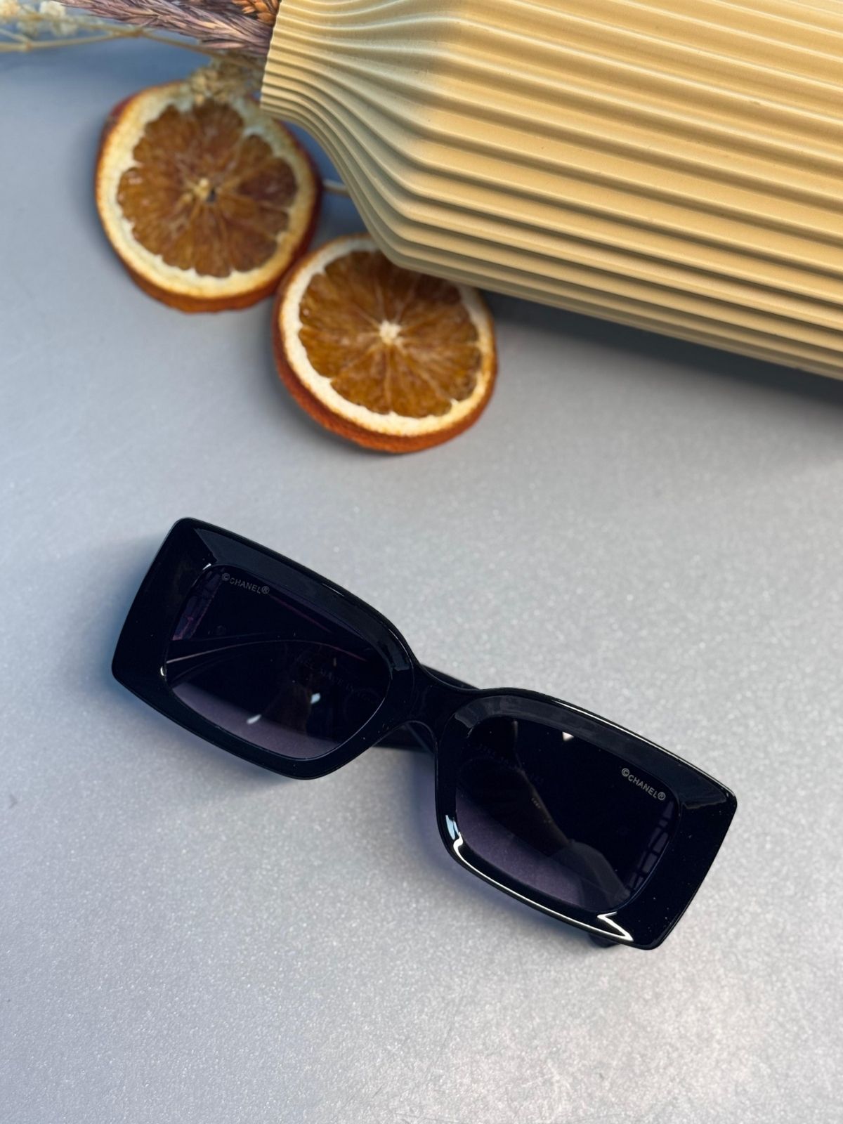Chanel Dikdörtgen Güneş Gözlüğü - Siyah Gümüş
