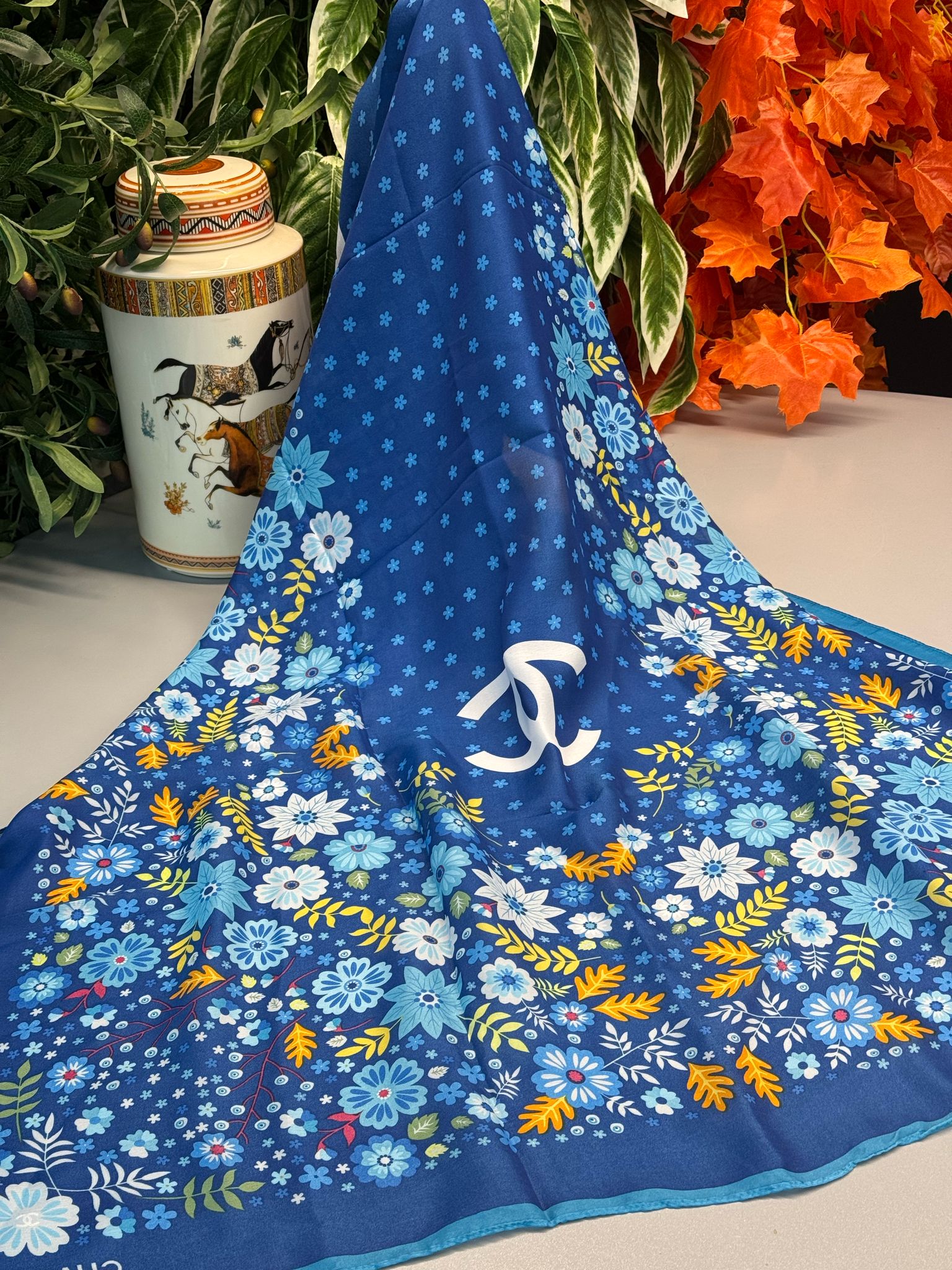 Chanel İthal Vual Çiçek Desen Şal - Saks