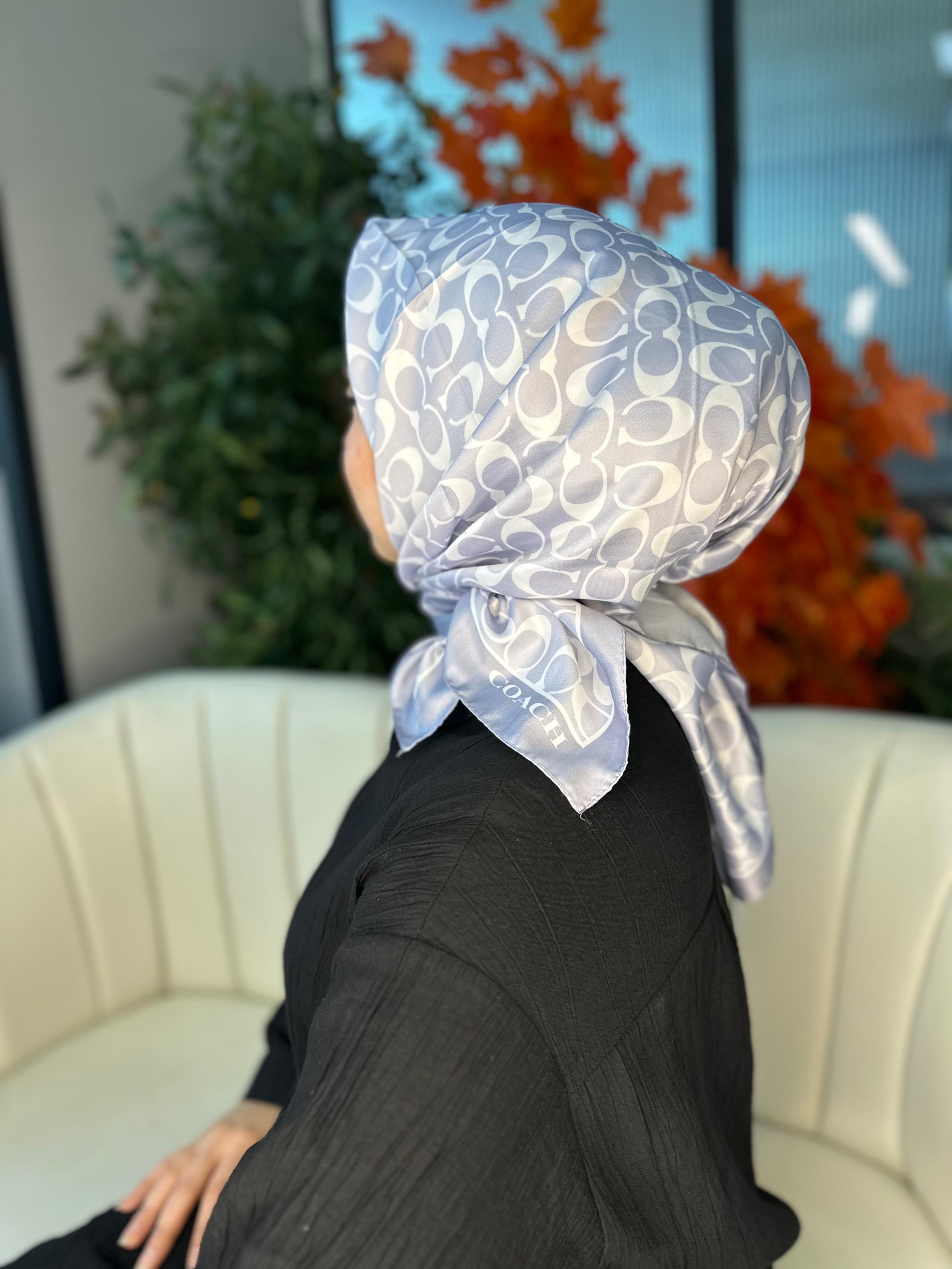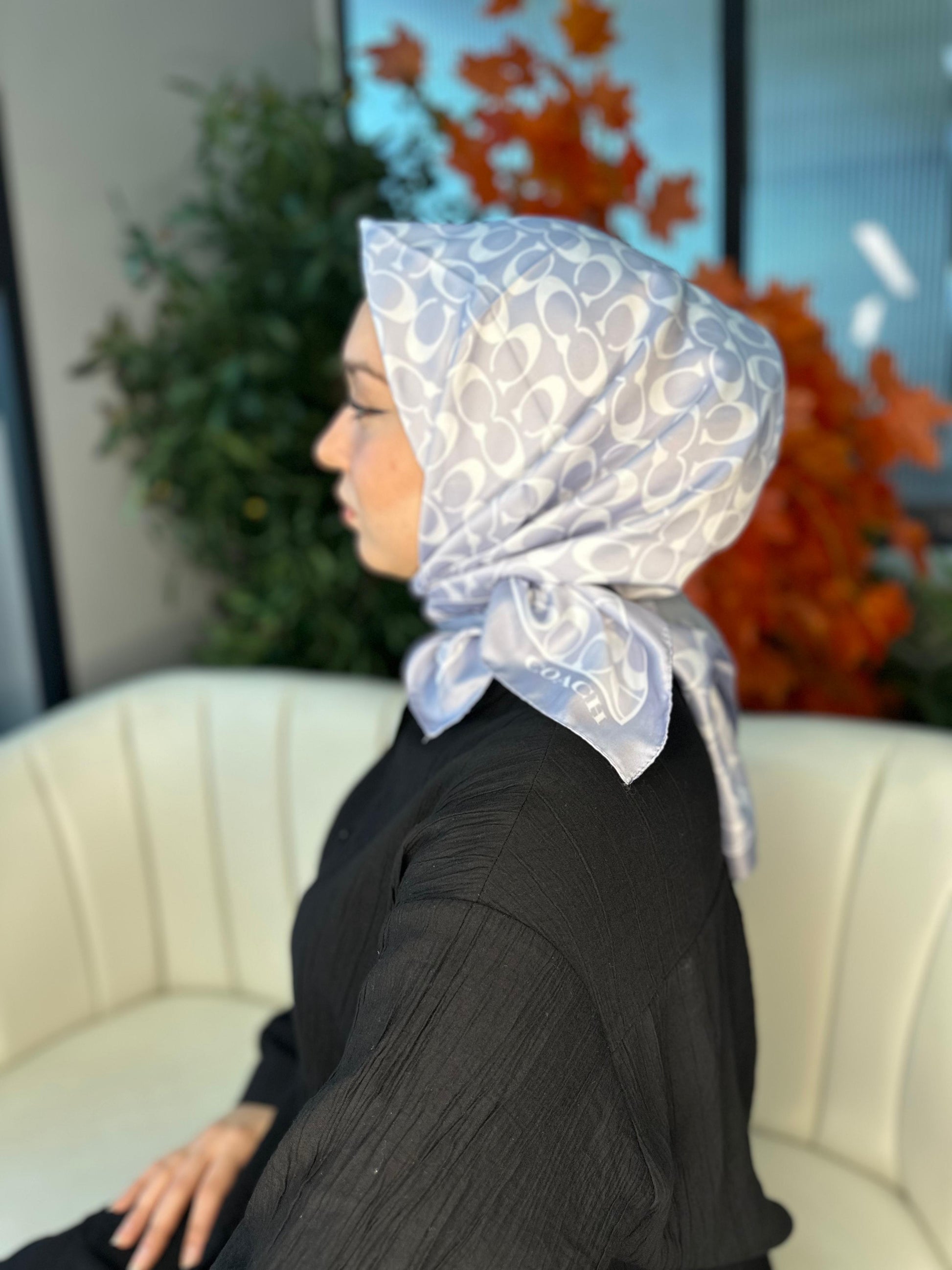 Coach Desenli Twill İpek Eşarp – %100 Orijinal | 90x90 cm