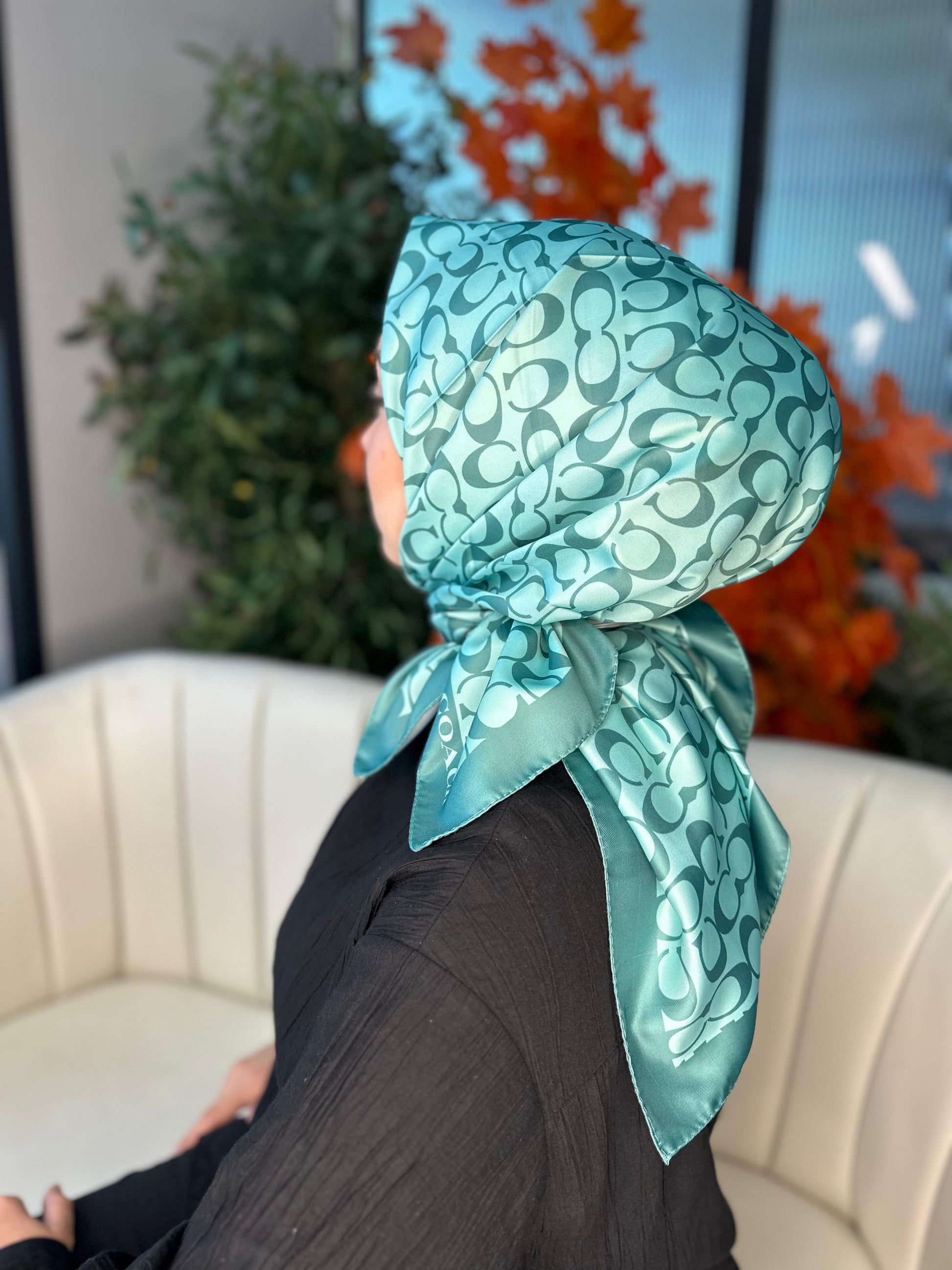 Coach Desenli Twill İpek Eşarp – %100 Orijinal | 90x90 cm