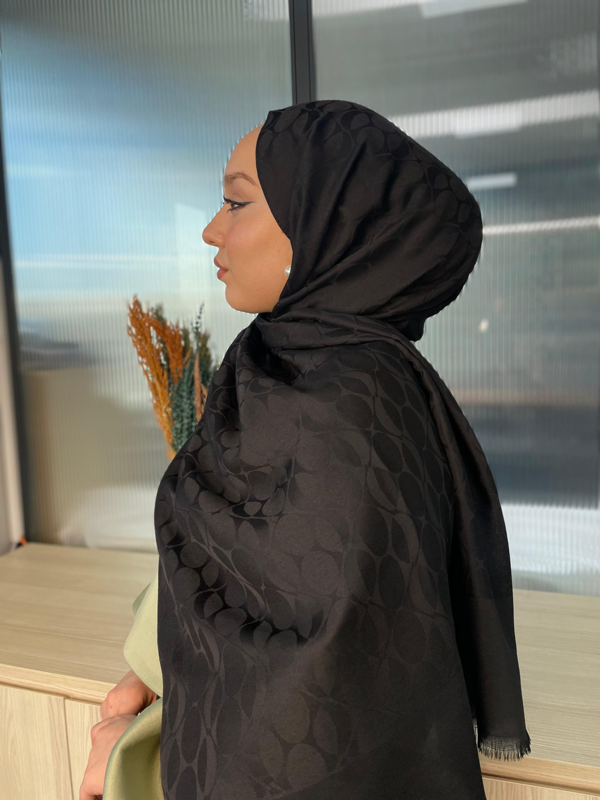 Dolunay Desen İpeksi Jakar Şal-75523- Siyah
