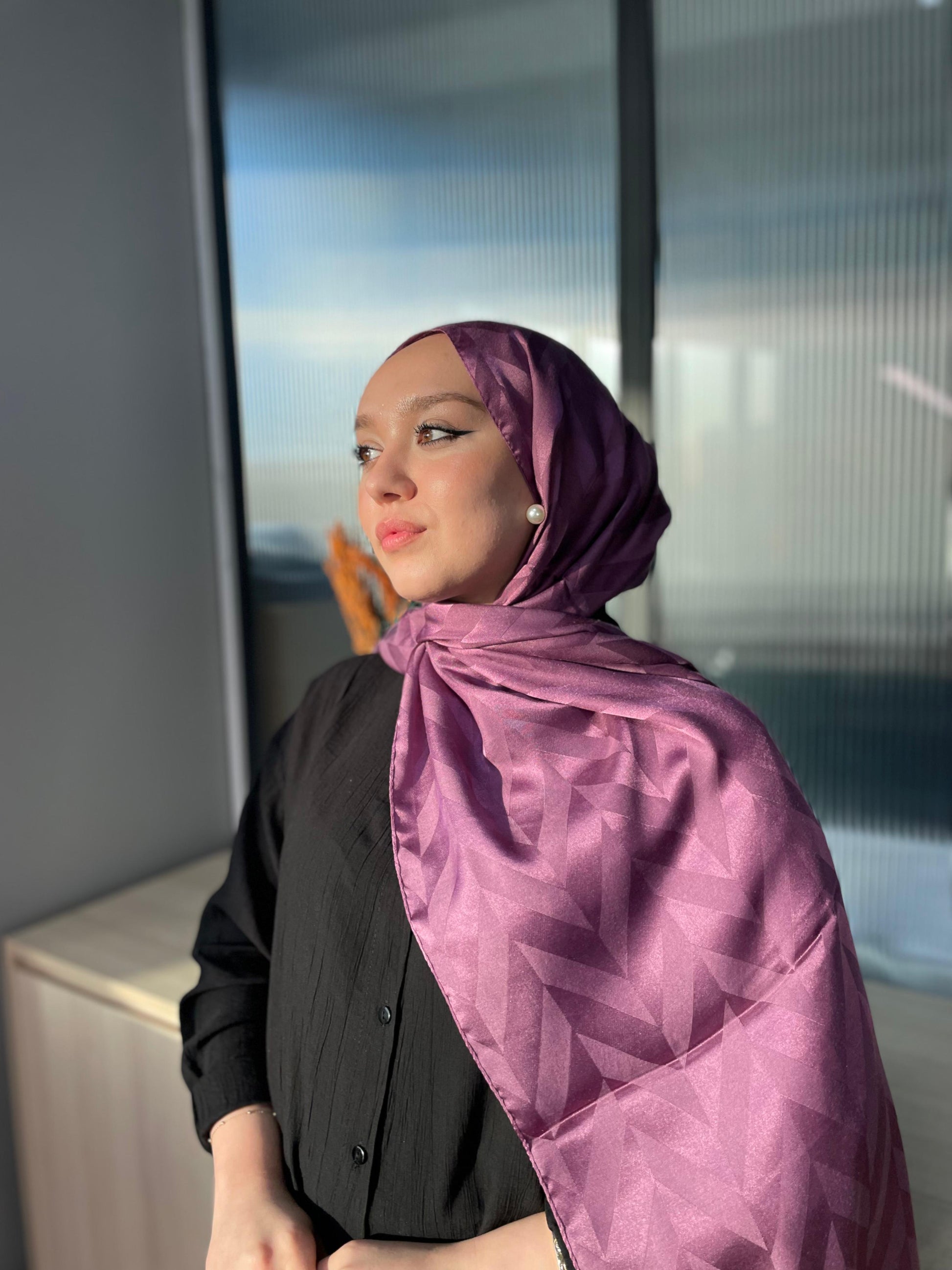 Eğimli Baklava Desen İpeksi Jakar Şal - 741256 - Lavanta
