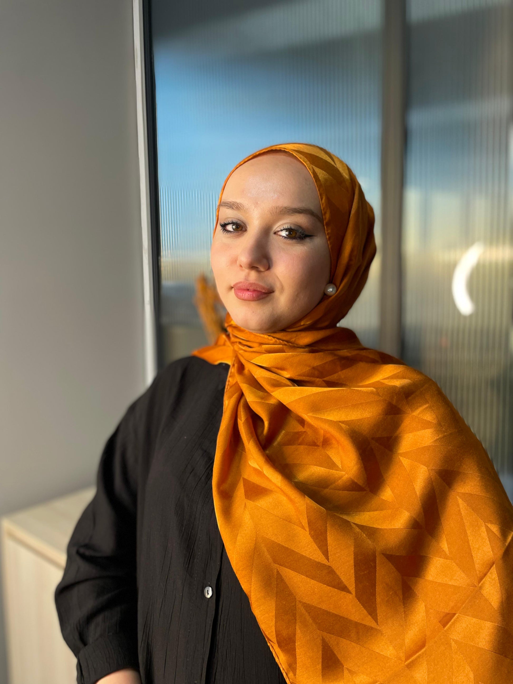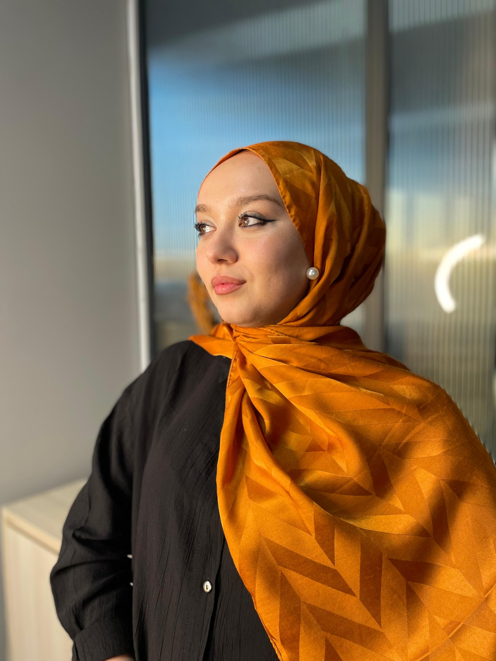 Eğimli Baklava Desen İpeksi Jakar Şal - 741256 - Portakal