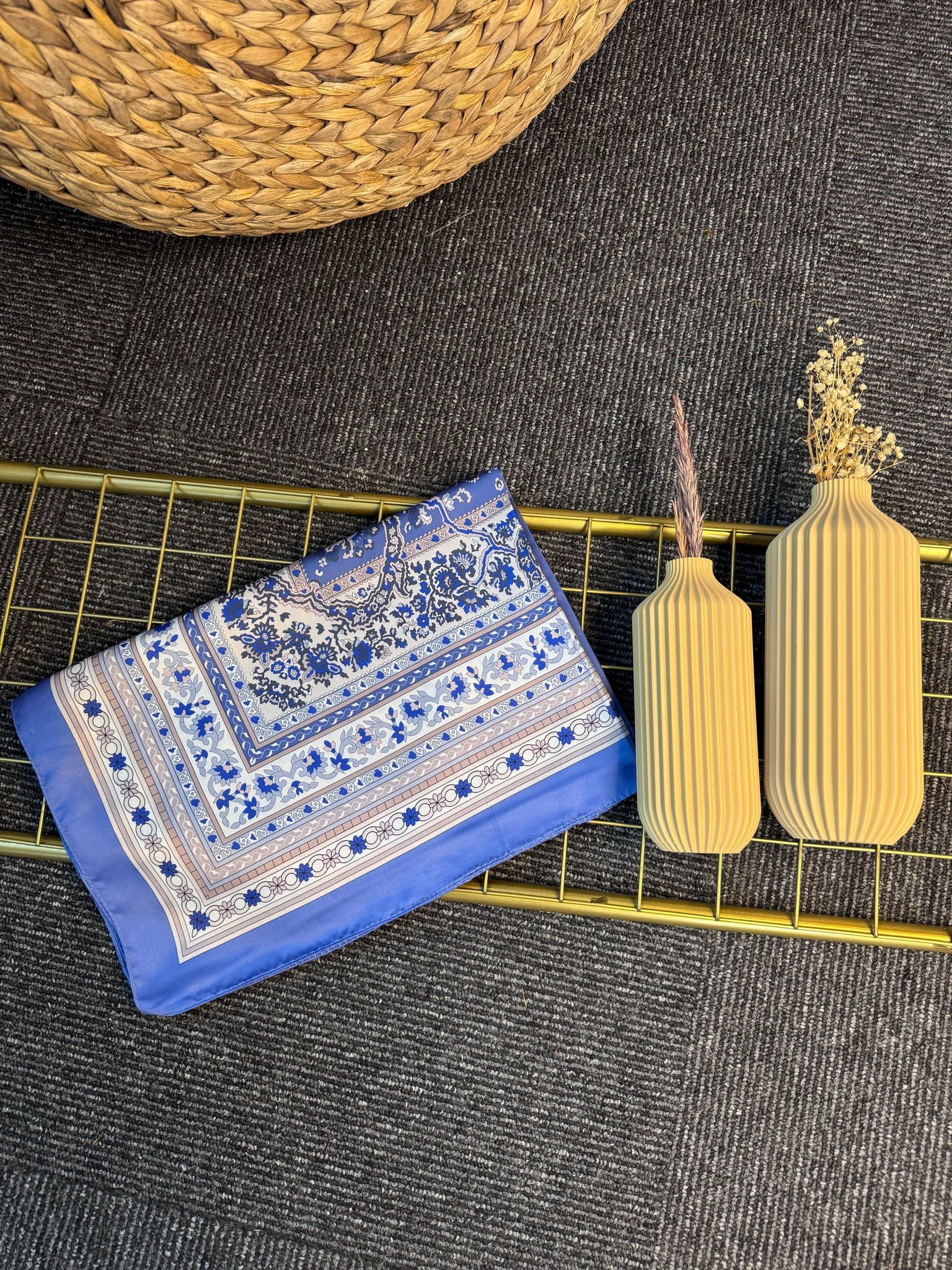 Etnik Desen Pamuk İpek Şal-456789-Bebe Mavisi