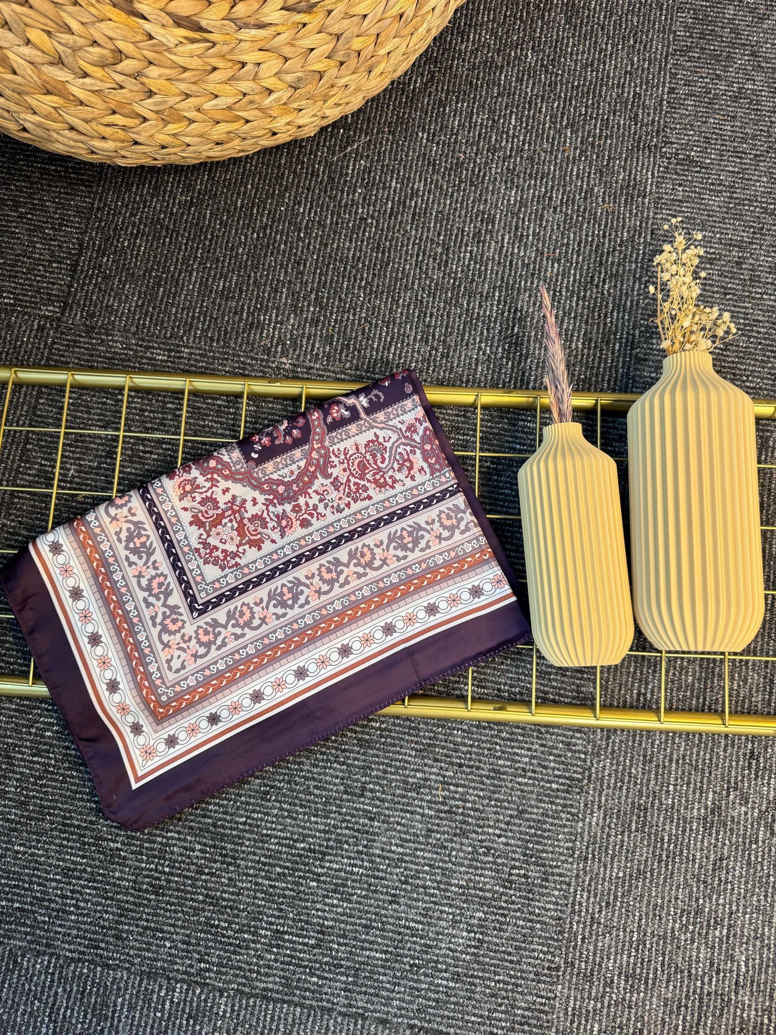 Etnik Desen Pamuk İpek Şal-456789-Mürdüm