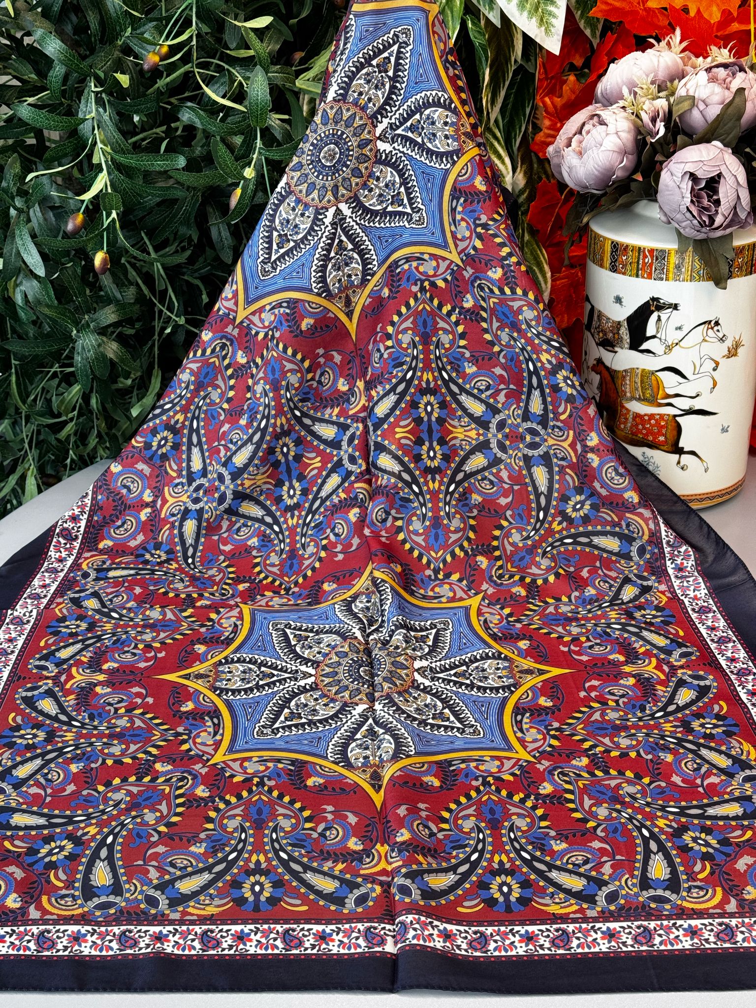 Etro Buta Desenli Pamuk Soft Şal - 377350 - Lacivert Bordo
