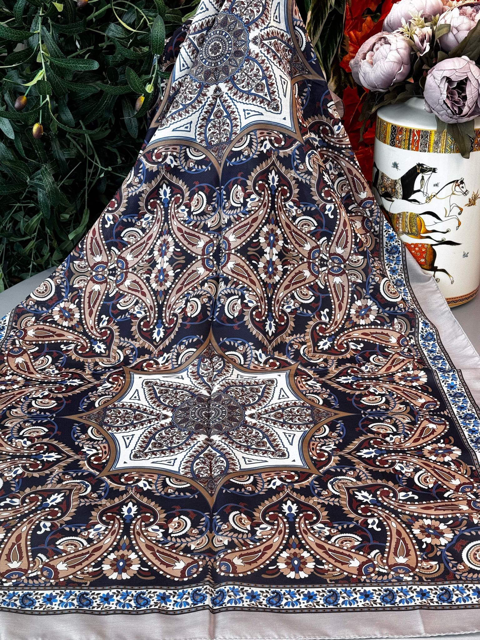 Etro Buta Desenli Pamuk Soft Şal - 377350 - Lacivert Füme