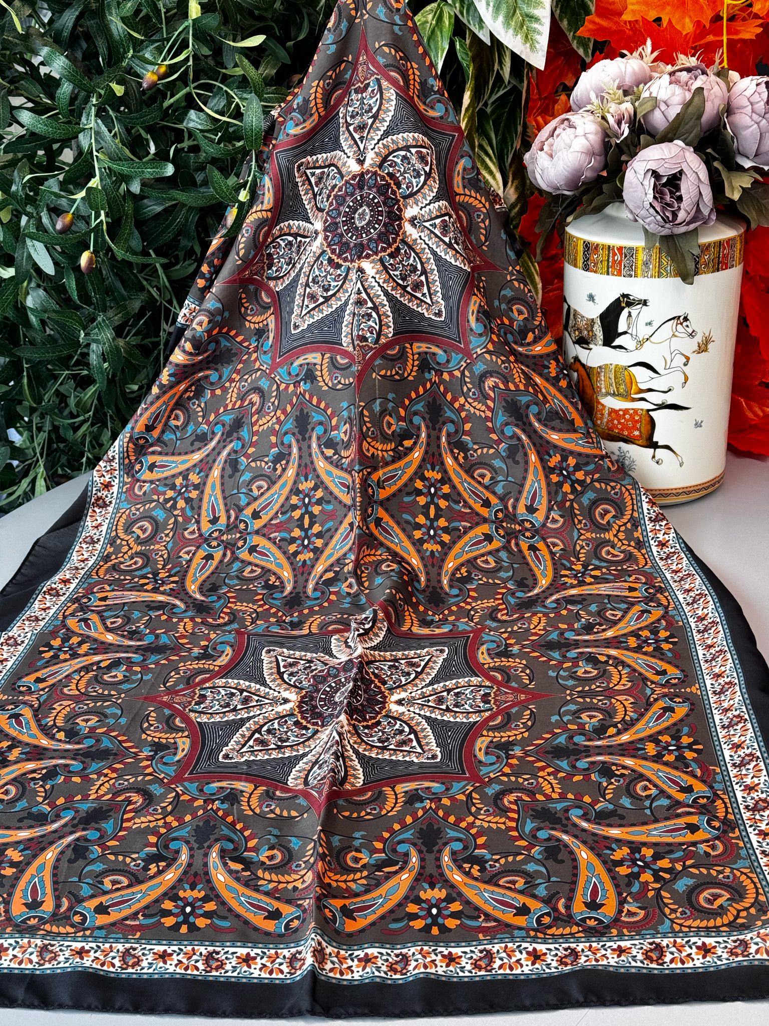 Etro Buta Desenli Pamuk Soft Şal - 377350 - Turuncu Siyah