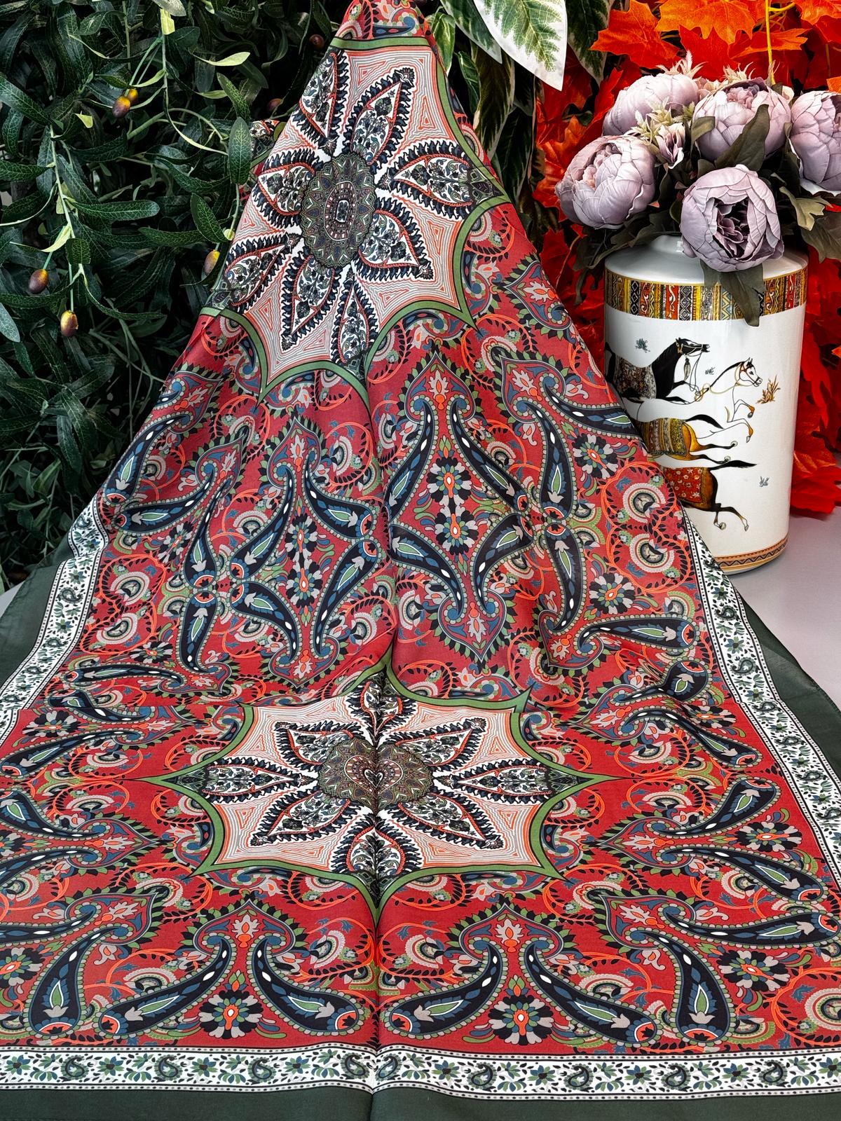 Etro Buta Desenli Pamuk Soft Şal - 377350 - Turuncu Yeşil