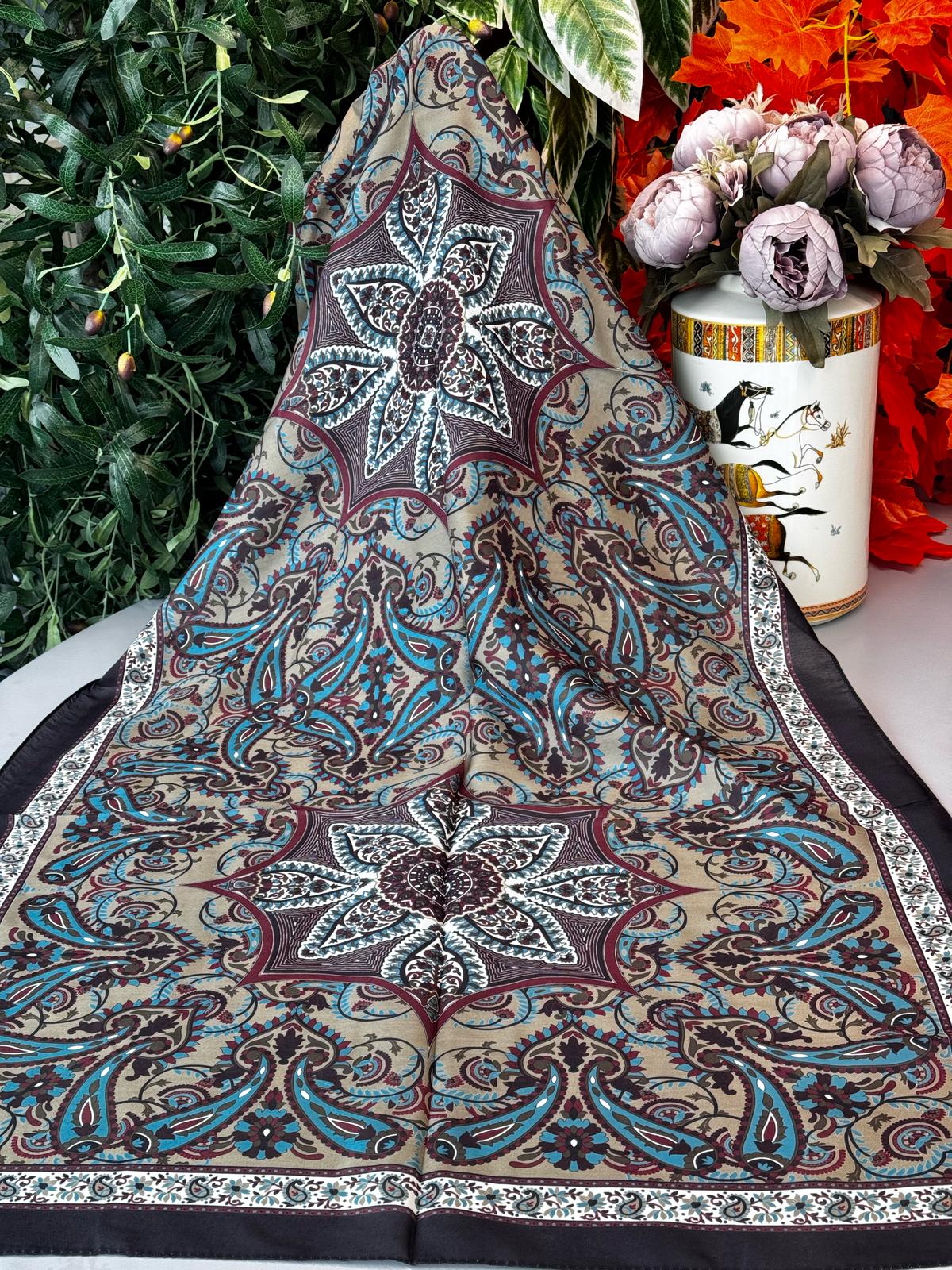 Etro Buta Desenli Pamuk Soft Şal - 377350 - Vizon Lacivert