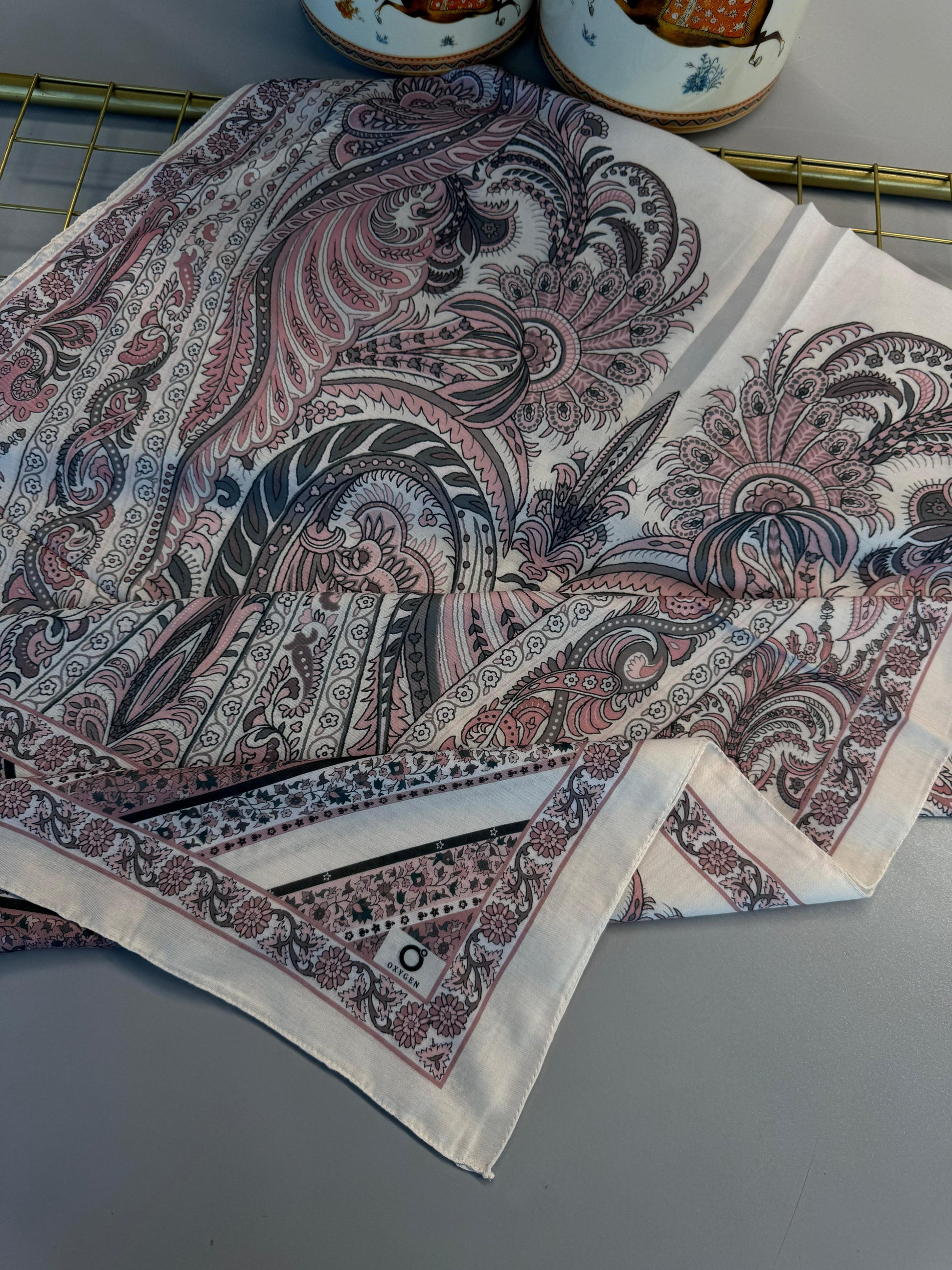Pamuk ve ipeğin hafifliğini bir araya getiren özel dokusu sayesinde dört mevsim konforla kullanılabilir. İnce ama tok yapısıyla hem günlük kombinlerinize hem özel gün şıklığınıza uyum sağlar. Sahra’nın sıcak tonlarından ilham alan motifleriyle farkınızı yansıtın.