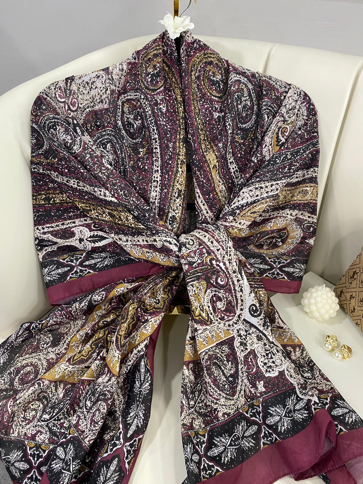 Etro Etnik Desen Pamuk İpek Şal - 23564 - ERİK MORU