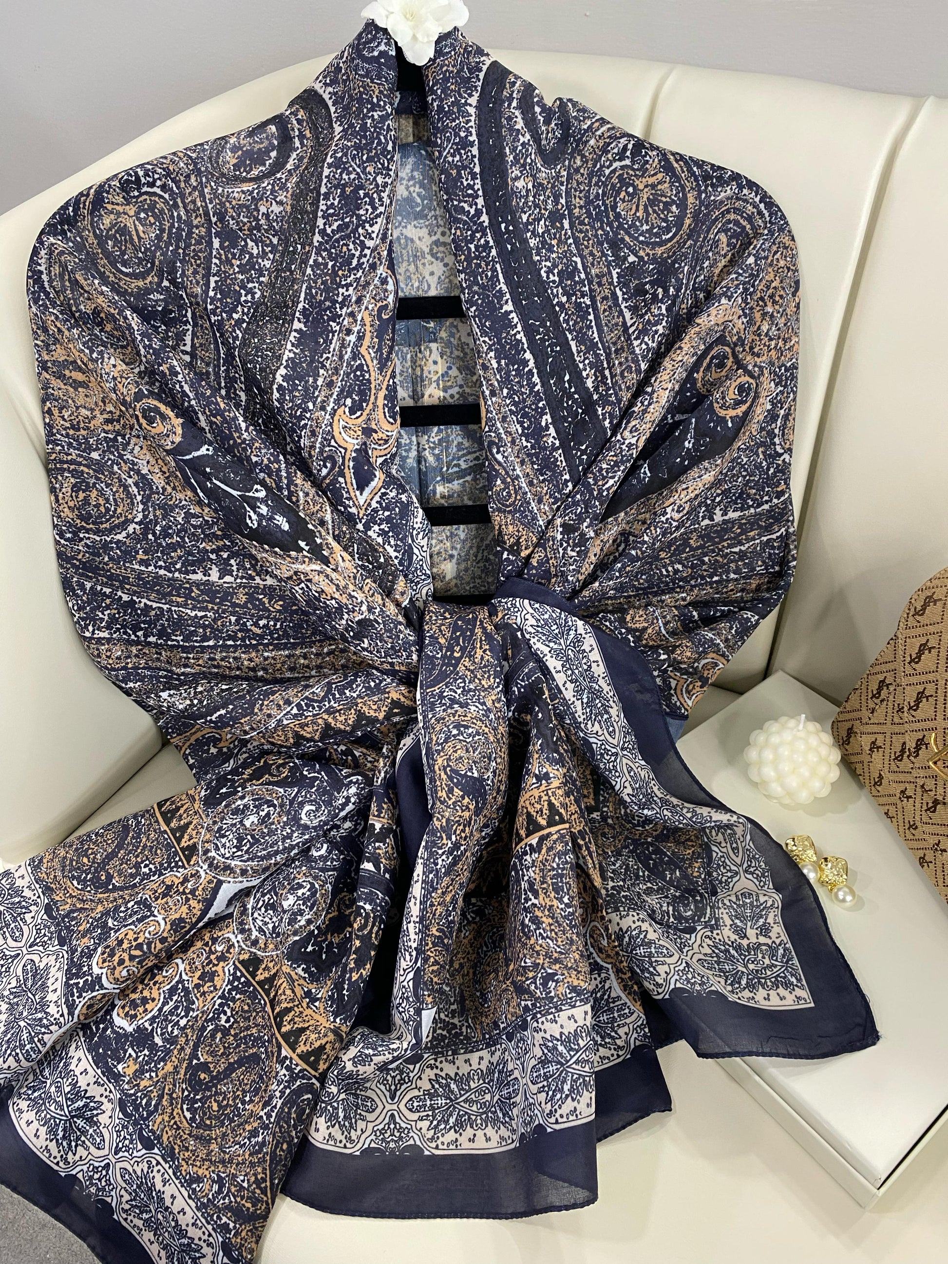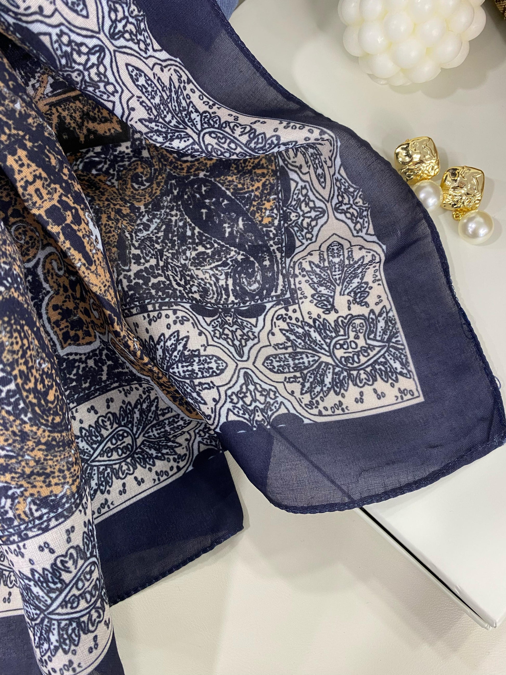 Etro Etnik Desen Pamuk İpek Şal - 23564 - LACİVERT