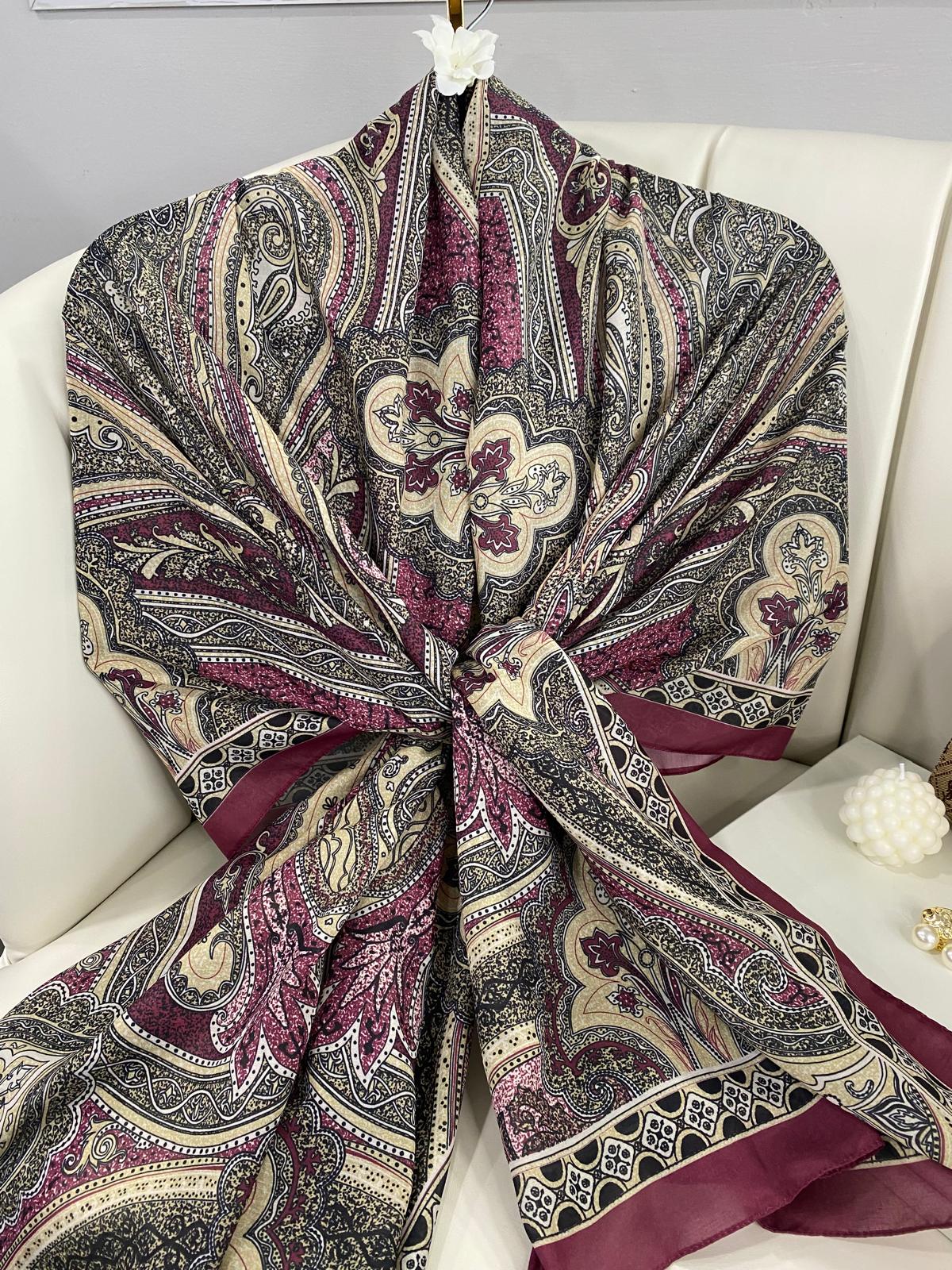 Çini Desen Pamuk İpek Şal -7458- MÜRDÜM