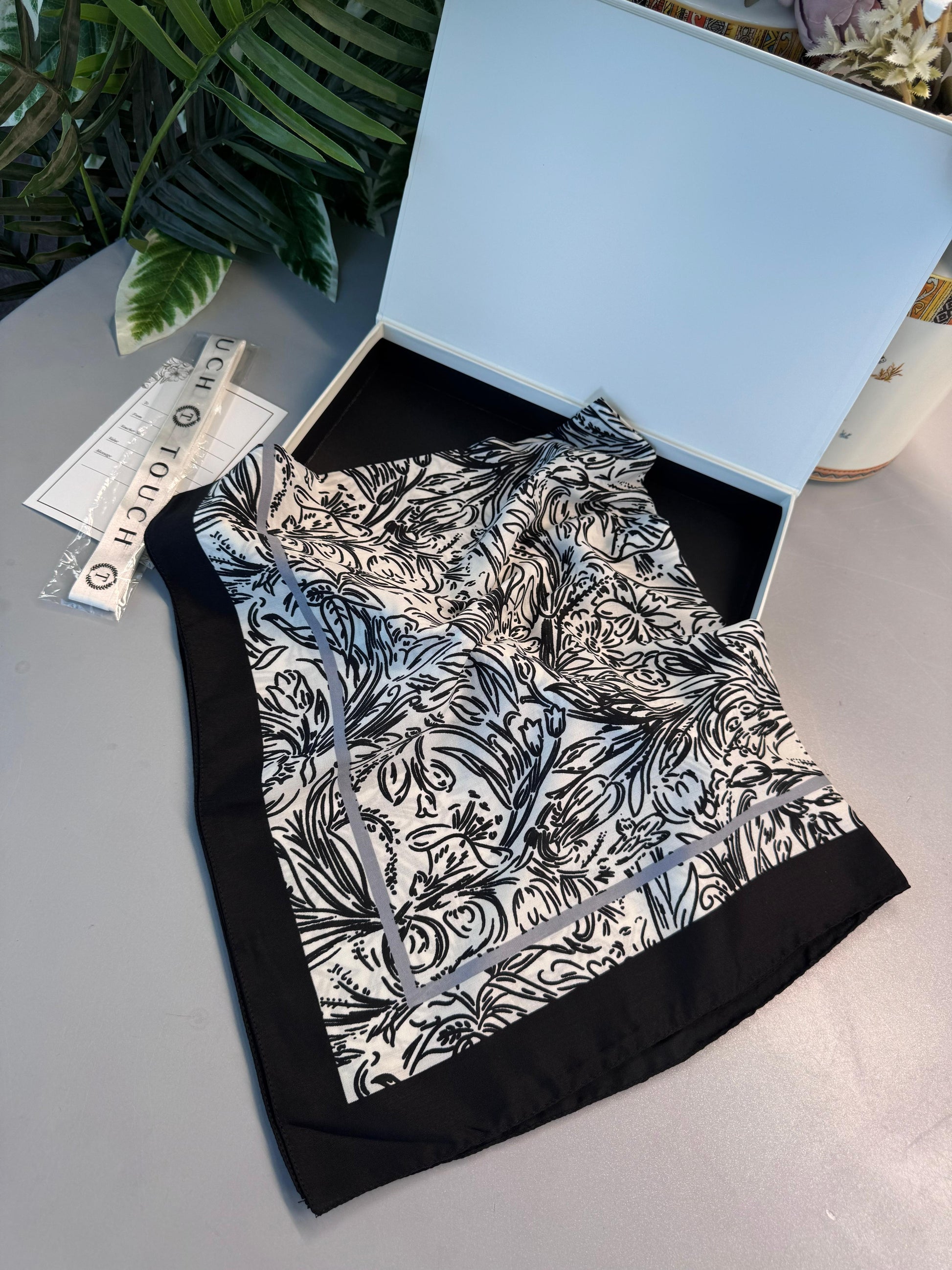 Fourty Floral Desen Pamuk İpek Şal-202343-Siyah