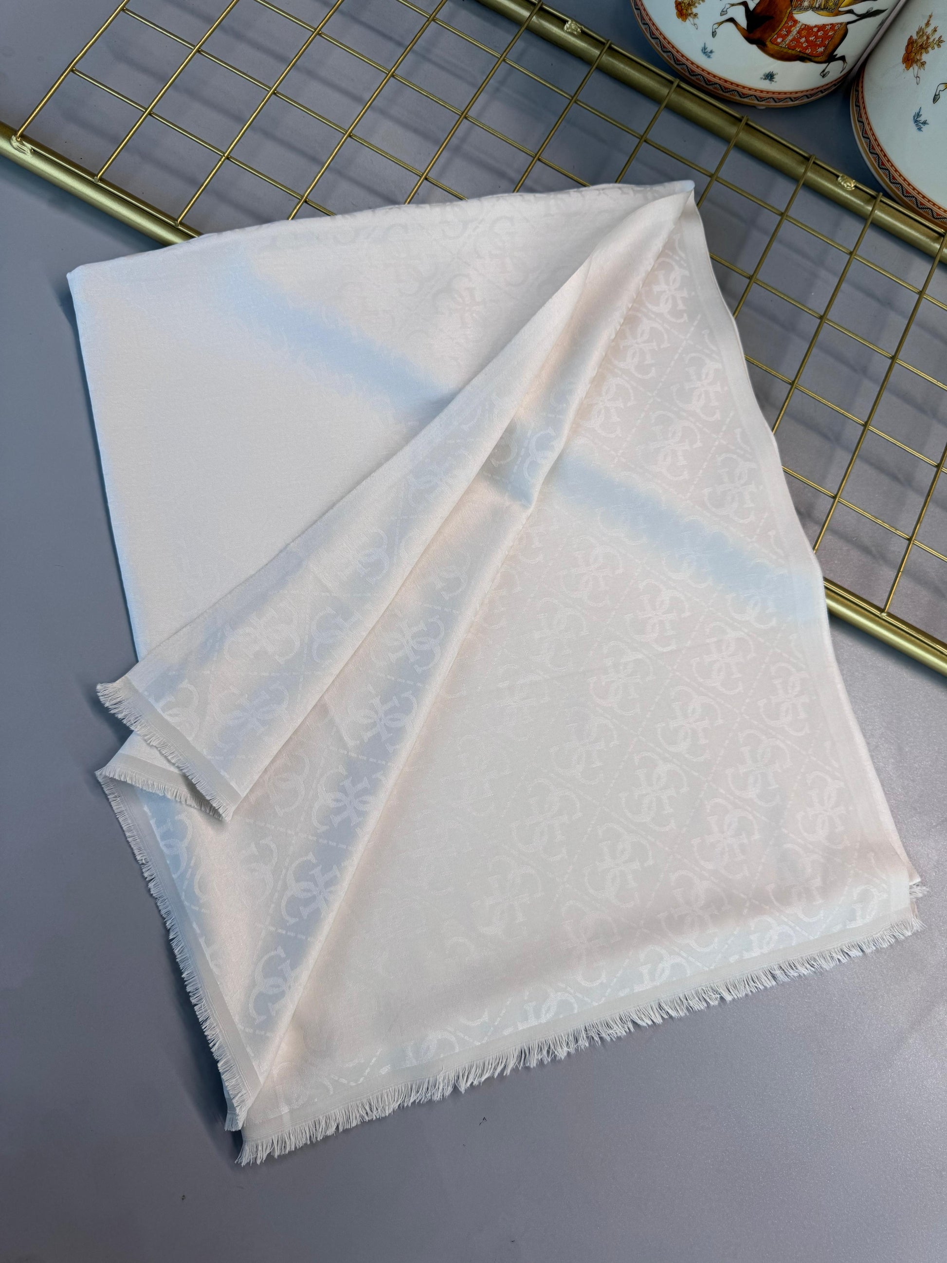 Guess Desen Kendinden Dokulu Desenli İtalyan Şal-10011-Beyaz