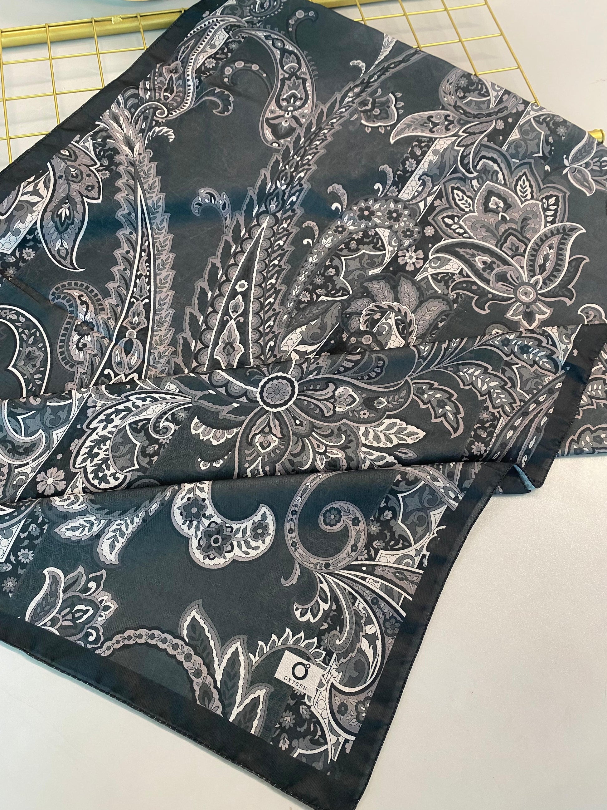 İnci Gecesi Desen Pamuk İpek Şal-10004-KOYU GRİ