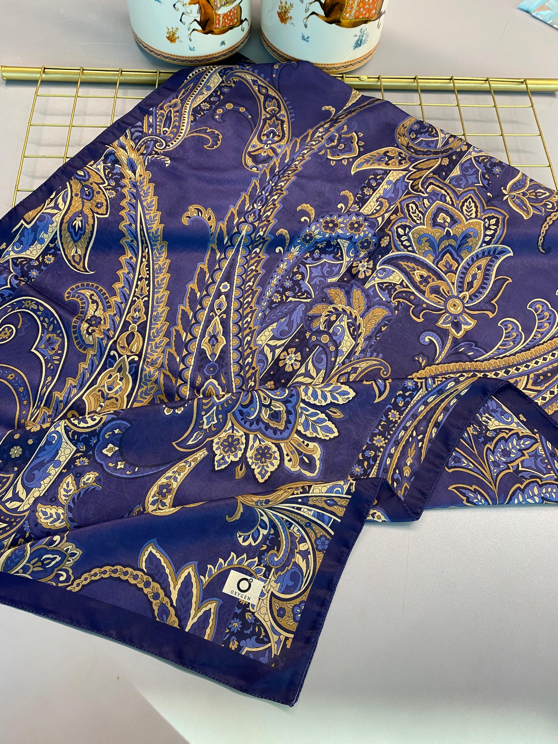 İnci Gecesi Desen Pamuk İpek Şal-10004-LACİVERT