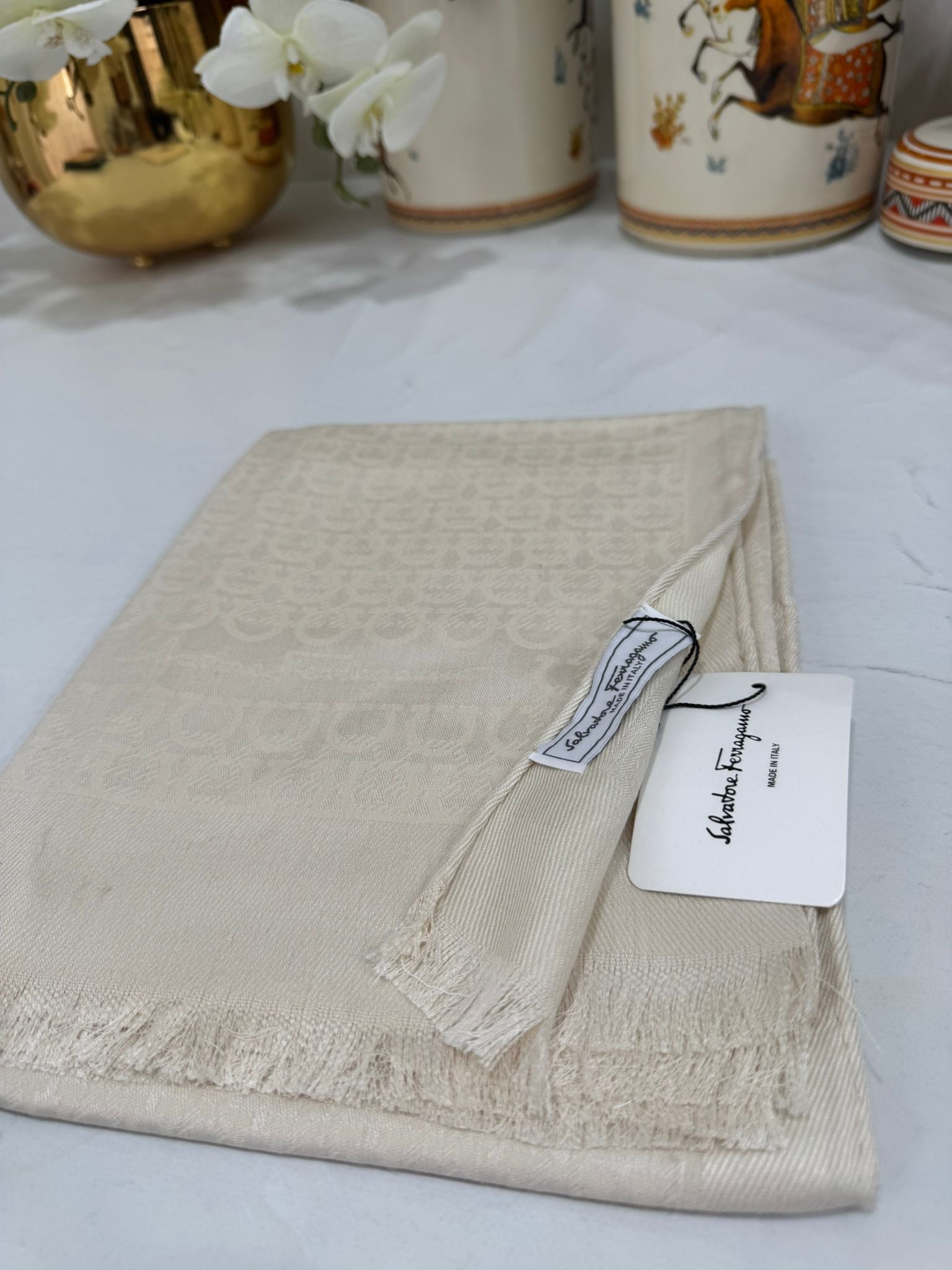 İTHAL A+ Salvatore Yün İpek Çift Taraflı Marka Şal 87452 - Bej