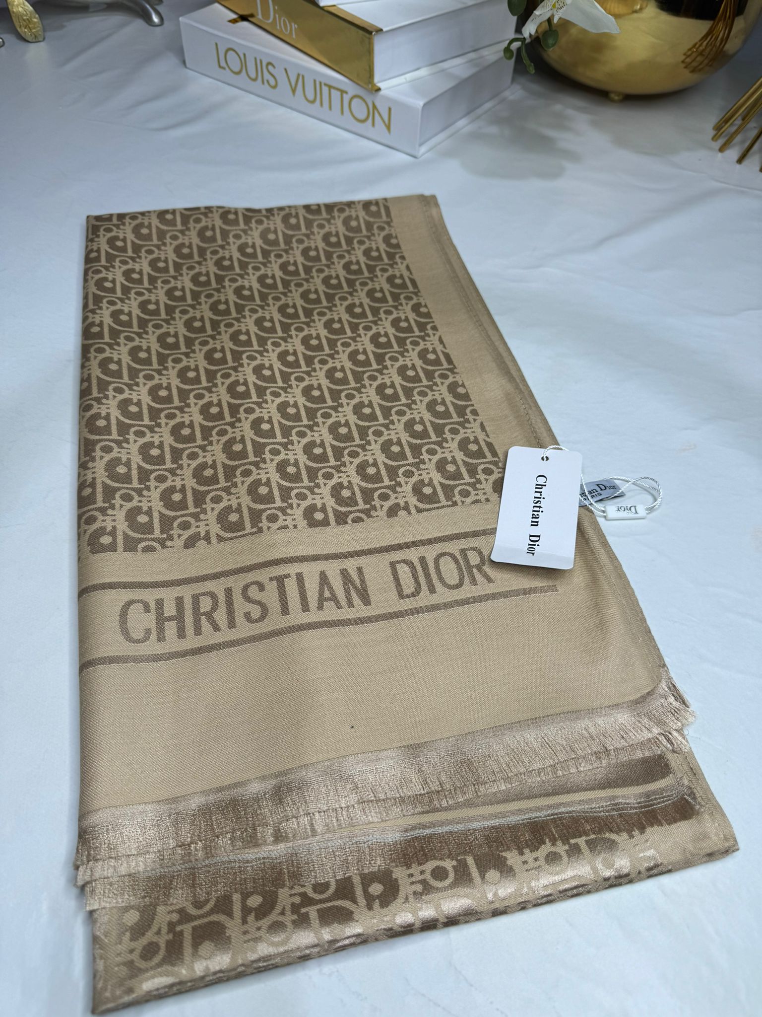 İthal Dior Pamuk Yün İpek Şal 49103 - Bej