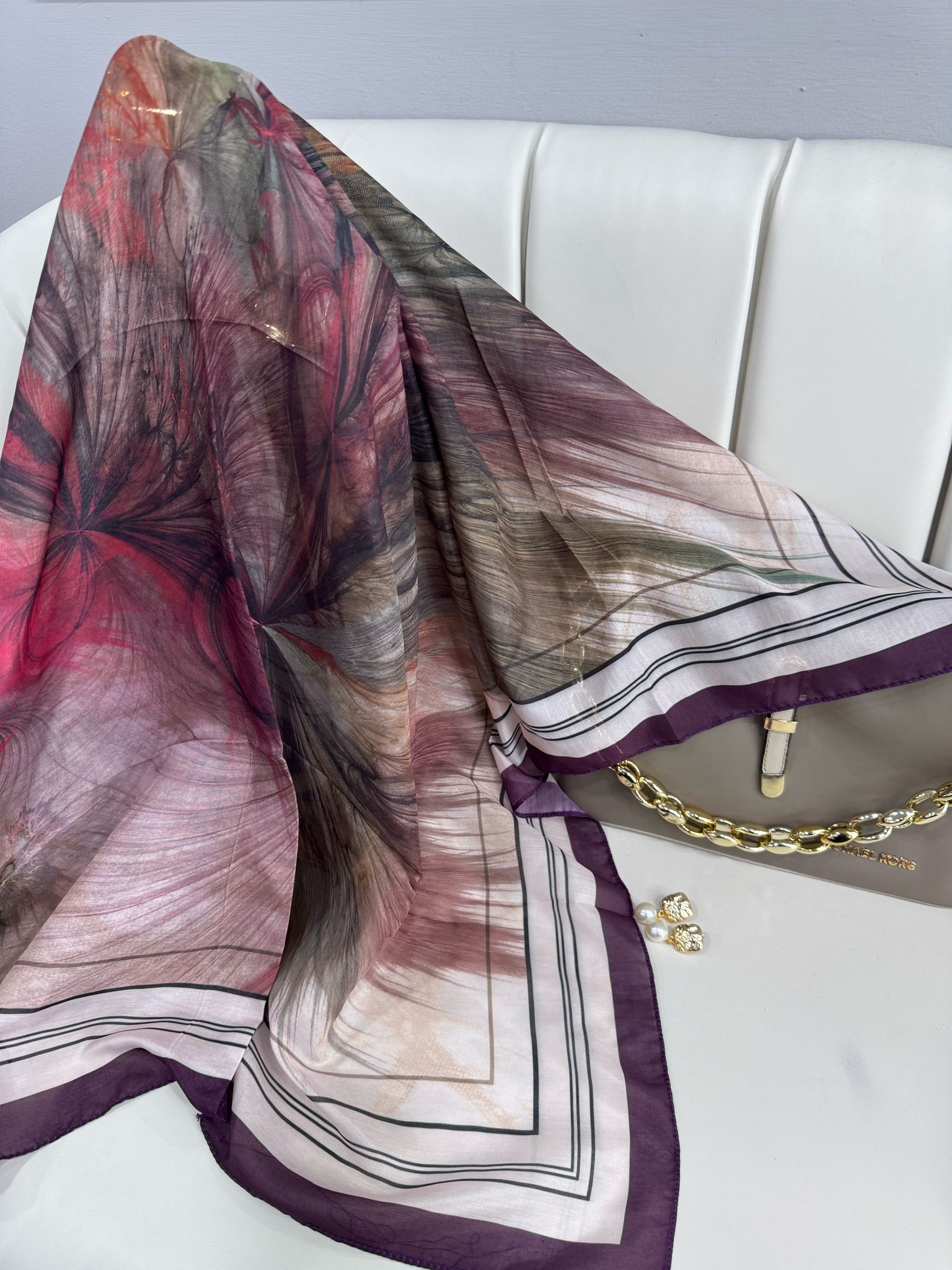 Karnaval Desen Pamuk İpeksi Eşarp- 457896-Böğürtlen