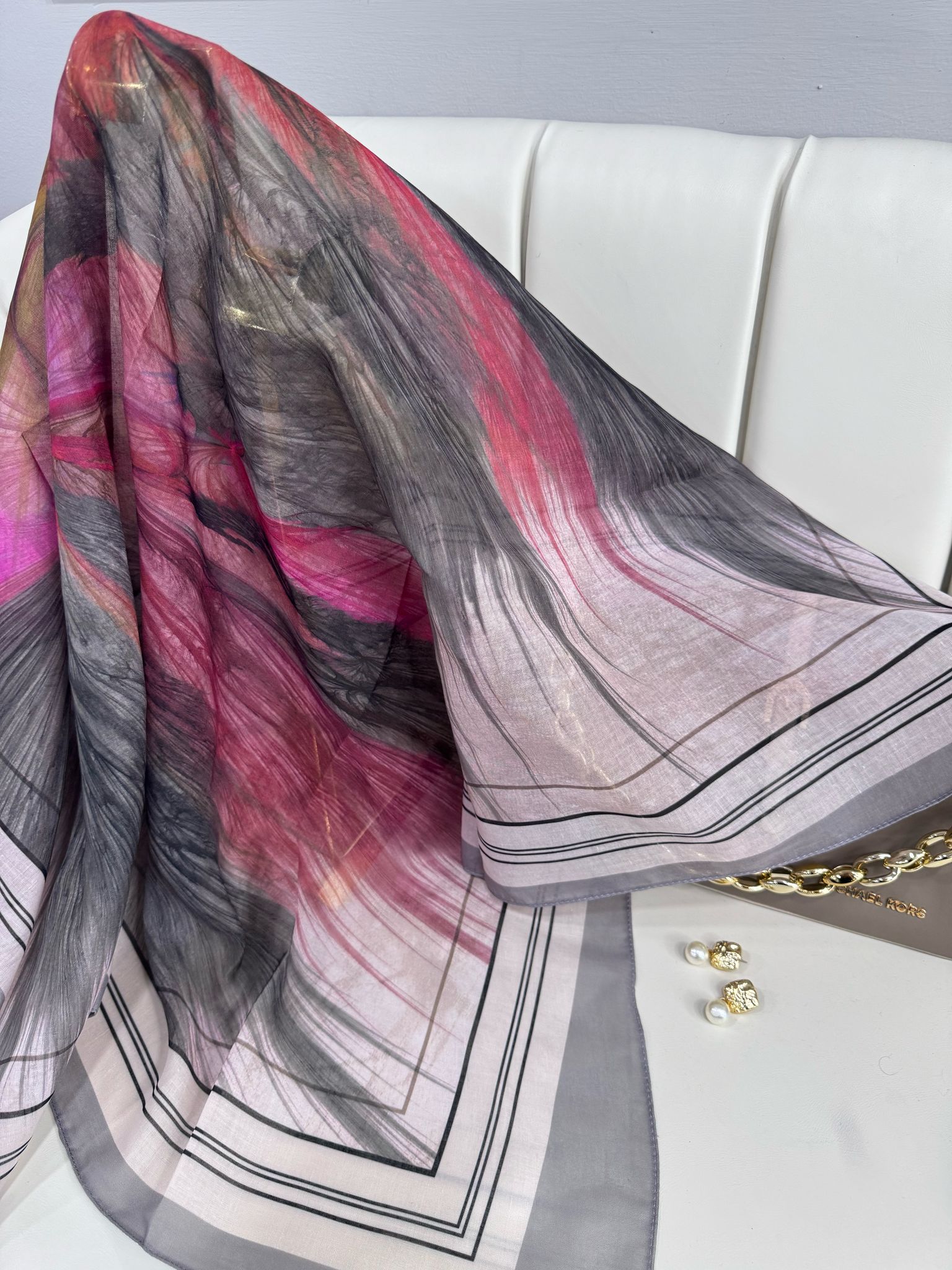 Karnaval Desen Pamuk İpeksi Eşarp- 457896- Kül Rengi