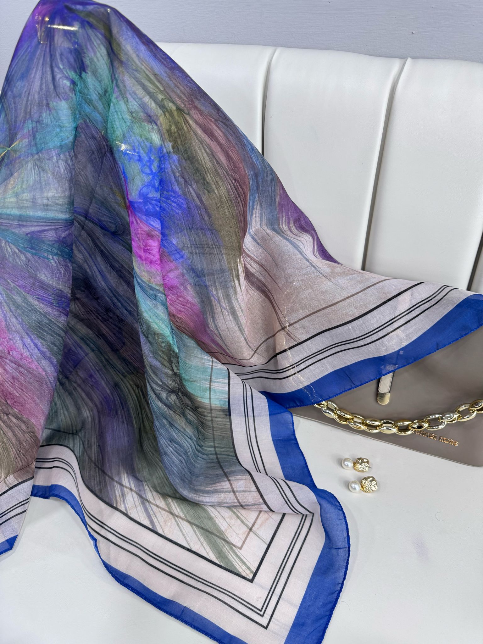 Karnaval Desen Pamuk İpeksi Eşarp- 457896- Mavi