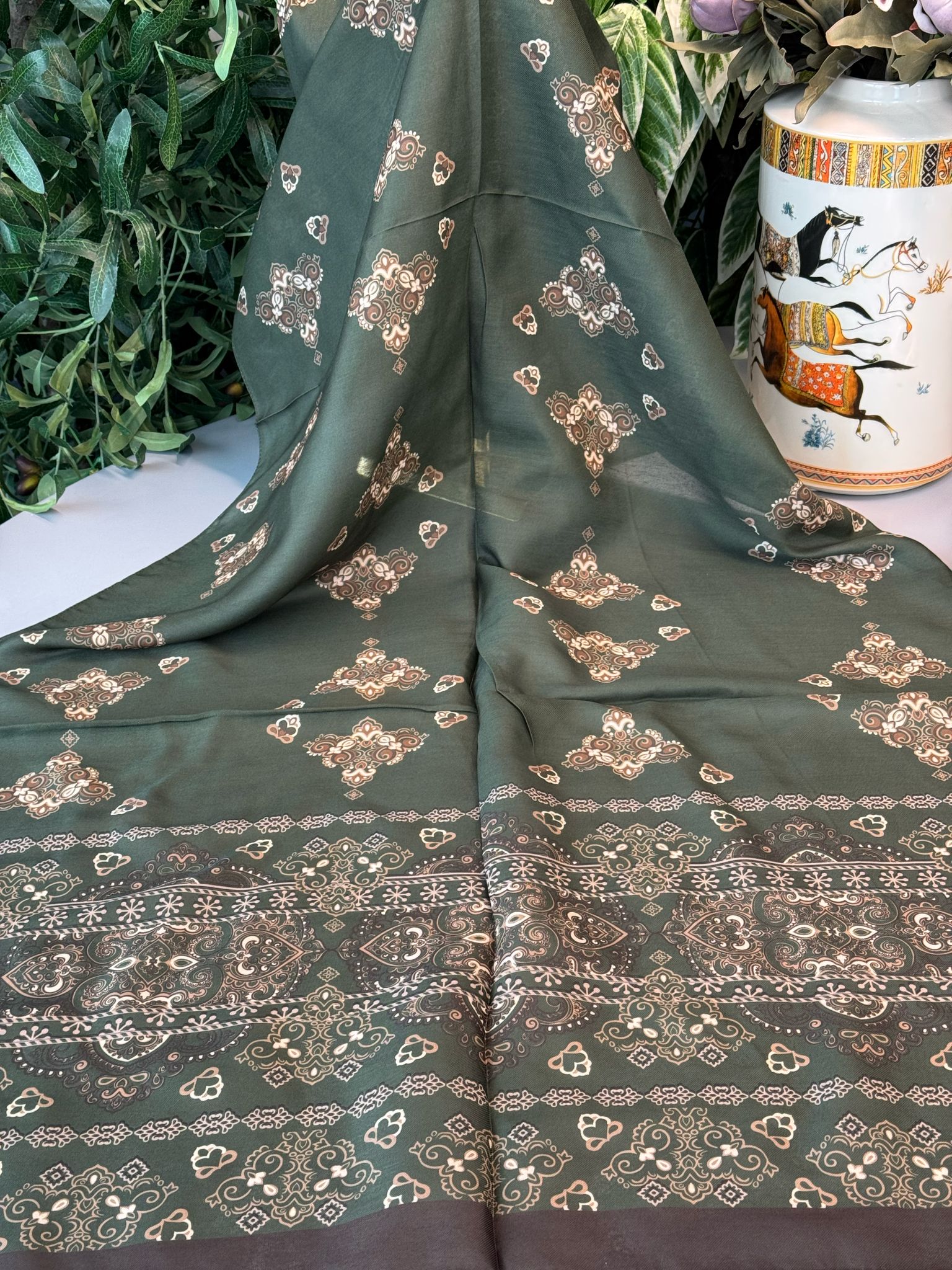 Kupa Desenli Pamuk İpek Şal - 797730 - Zümrüt