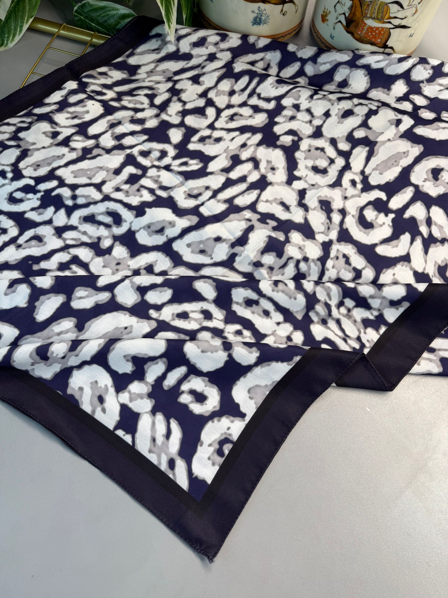 Leopare Desen Pamuk İpek Şal-6202761-Lacivert