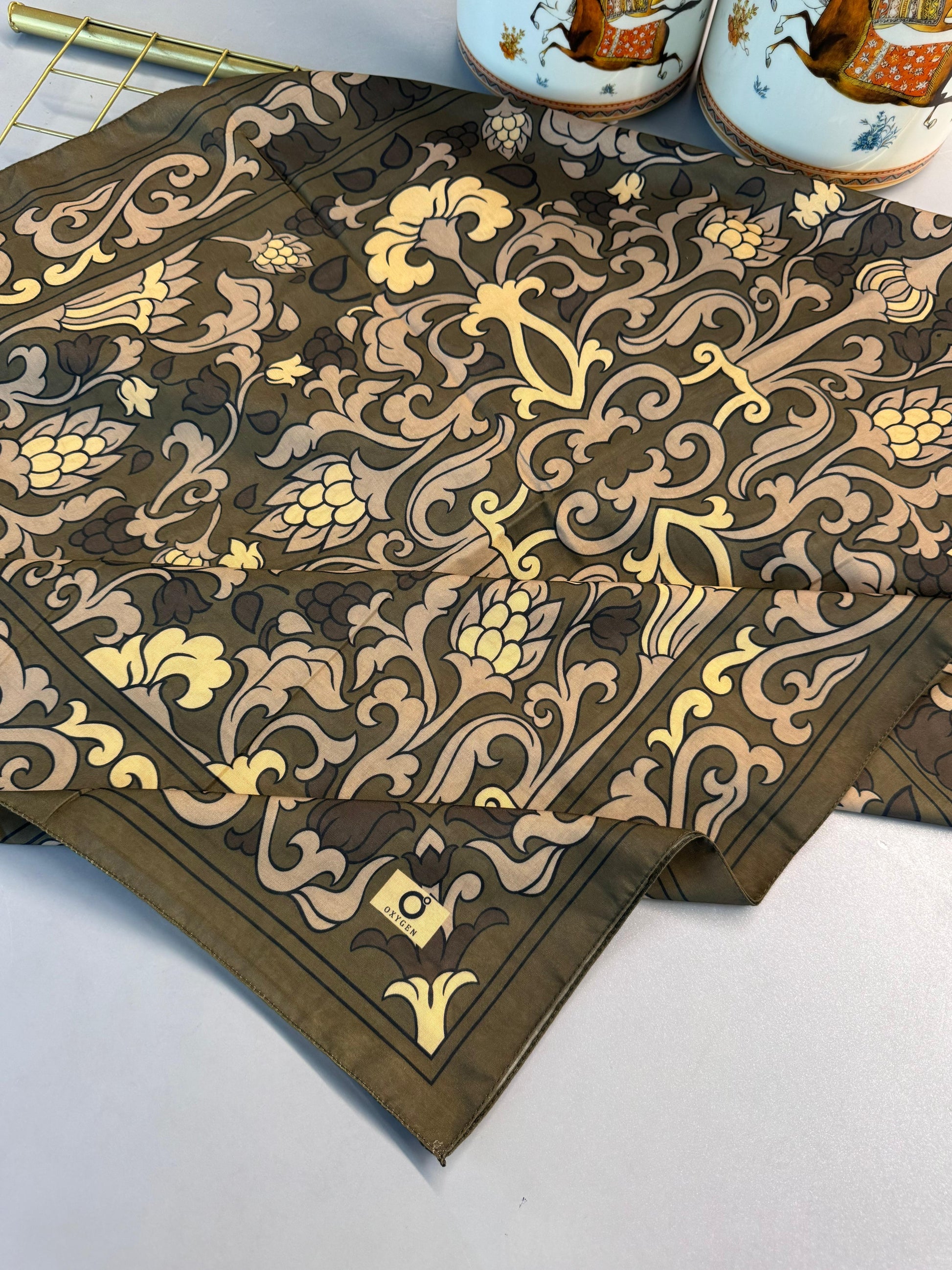 Lilyum Desen Pamuk İpek Şal-10008-Asker yeşili