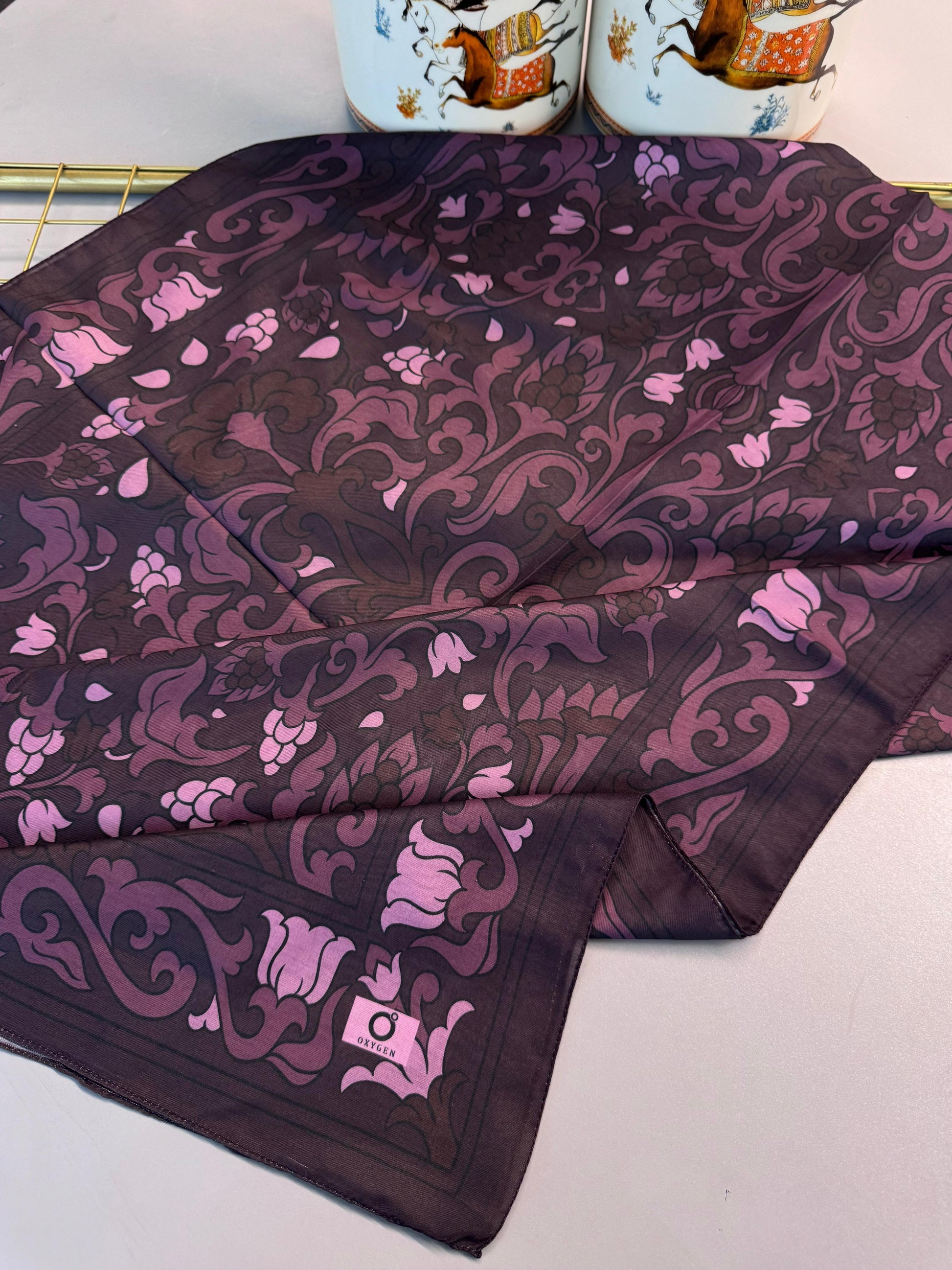 Lilyum Desen Pamuk İpek Şal-10008-Mürdüm