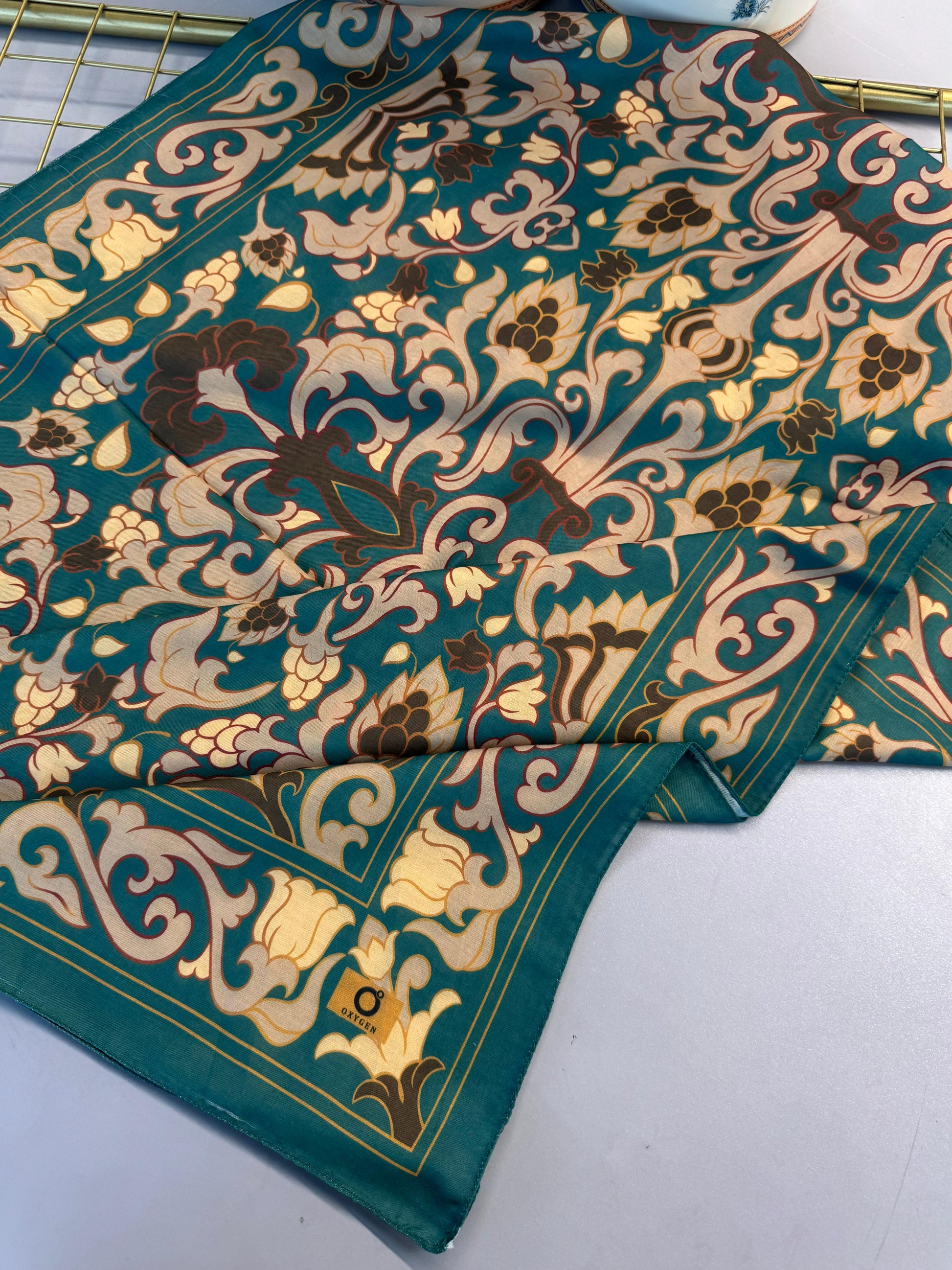 Lilyum Desen Pamuk İpek Şal-10008-Yeşil