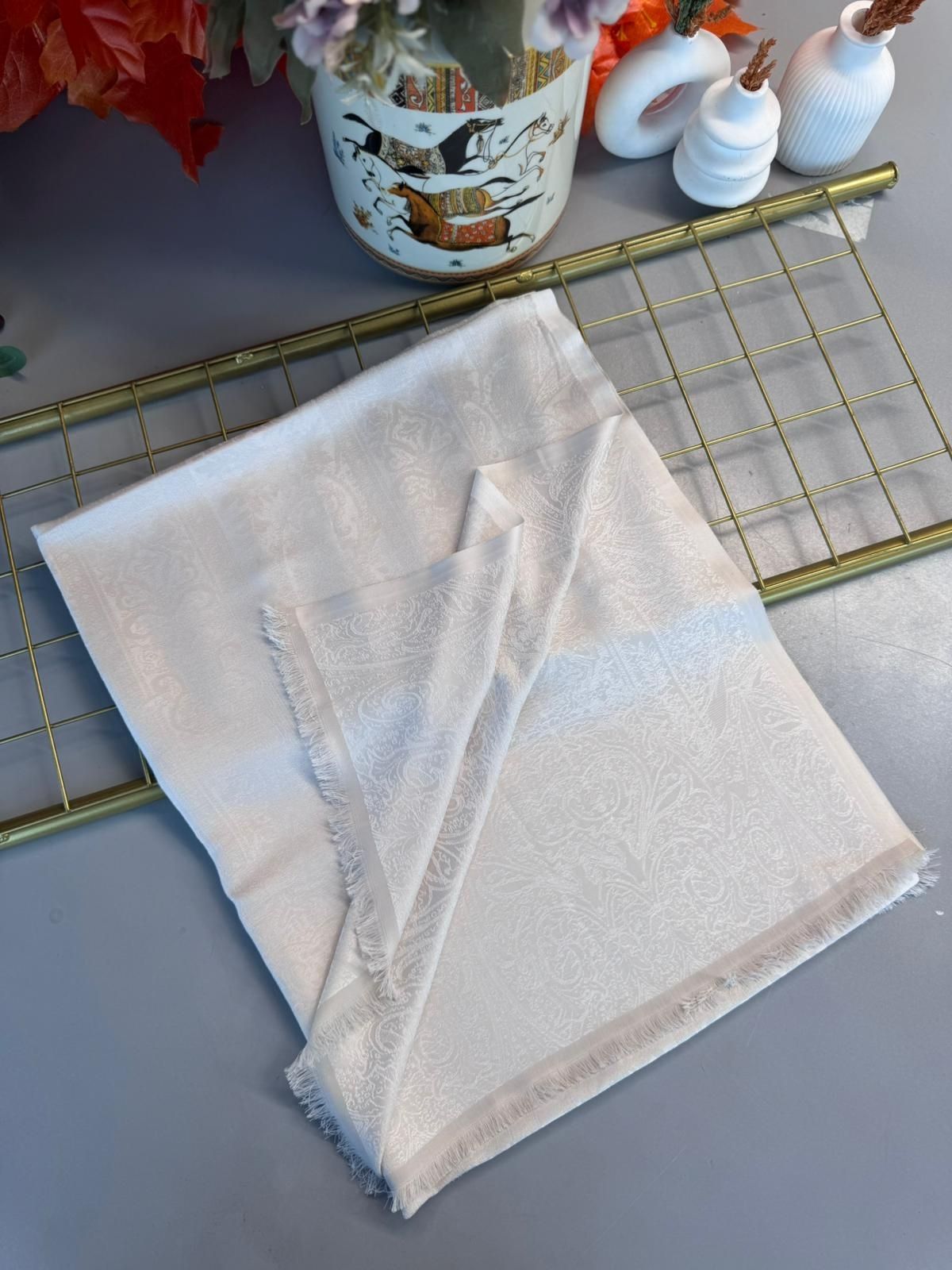 Liva Kendinden Dokulu Çift Taraflı İpek Şal - 9897 -Krem