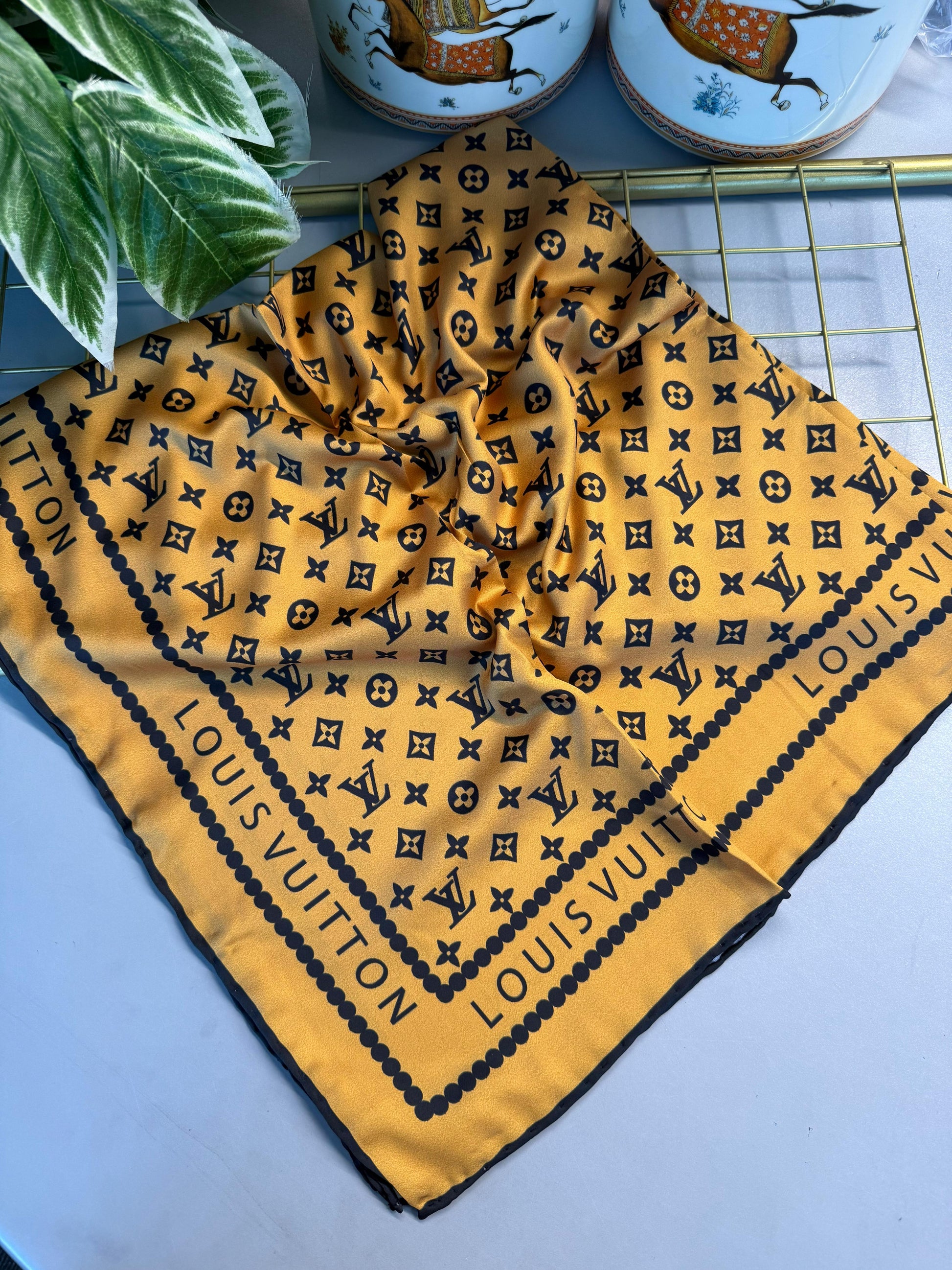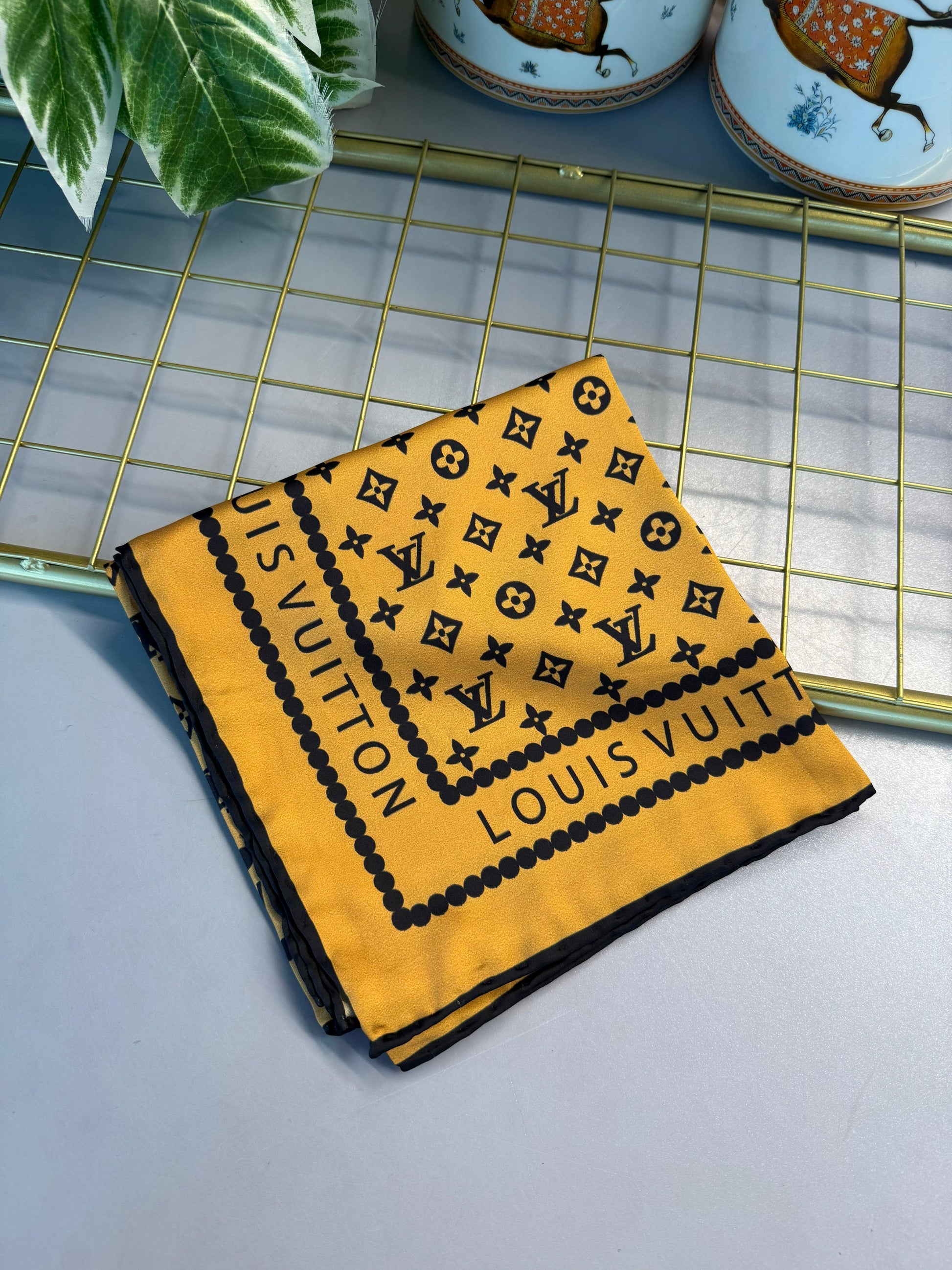 LV Desen Vual İpek Eşarp - Hardal Sarı