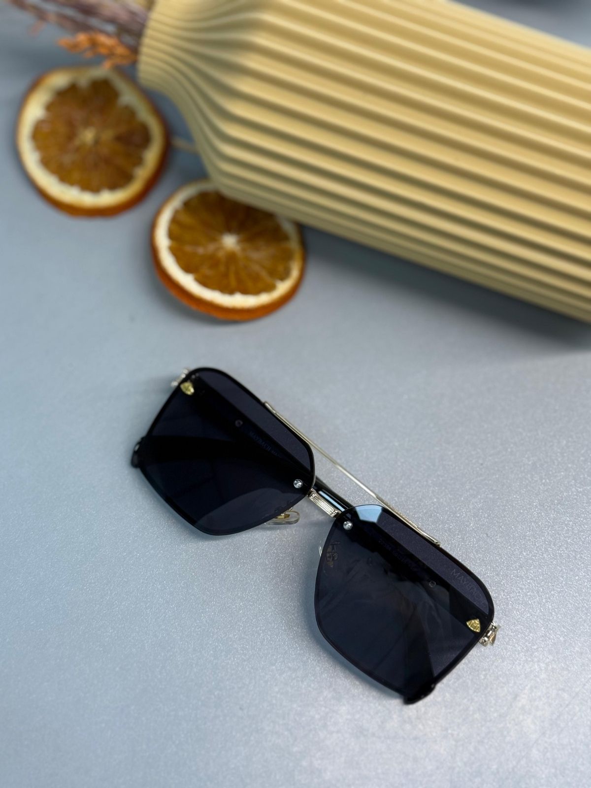 Maybach'ın zarafet dolu tasarımını taşıyan Gold-Siyah güneş gözlüğü, asil siyah camları ve ince altın detaylarıyla lüksü yeniden tanımlıyor. Çerçevesiz modern görünümü, saplarındaki şık logo ve zarif altın dokunuşlarla bütünleşerek benzersiz bir stil oluşturuyor. Hafifliği sayesinde gün boyu rahat kullanım sunan bu model, UV koruması sayesinde gözlerinizi etkin biçimde korur. Prestiji ve şıklığı bir arada yaşamak isteyenlerin vazgeçilmez aksesuarı.