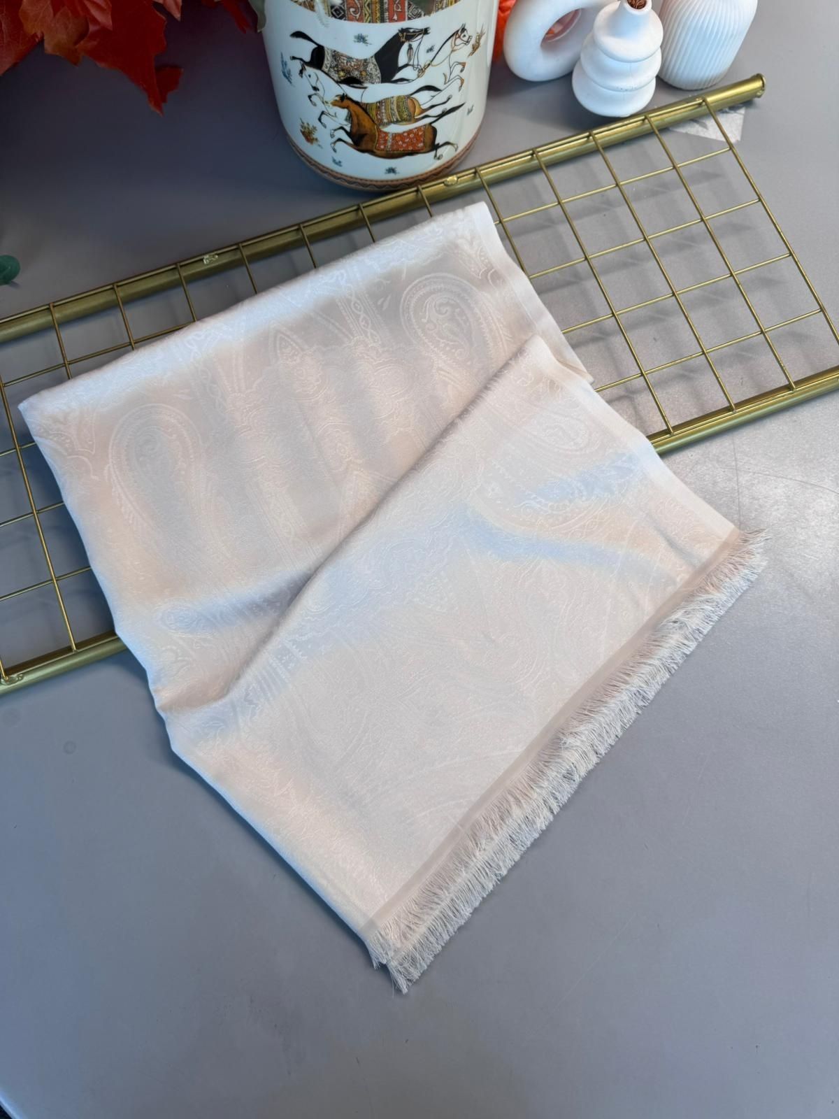 Milano Kendinden Dokulu Çift Taraflı İpek Şal - 8963 - Krem