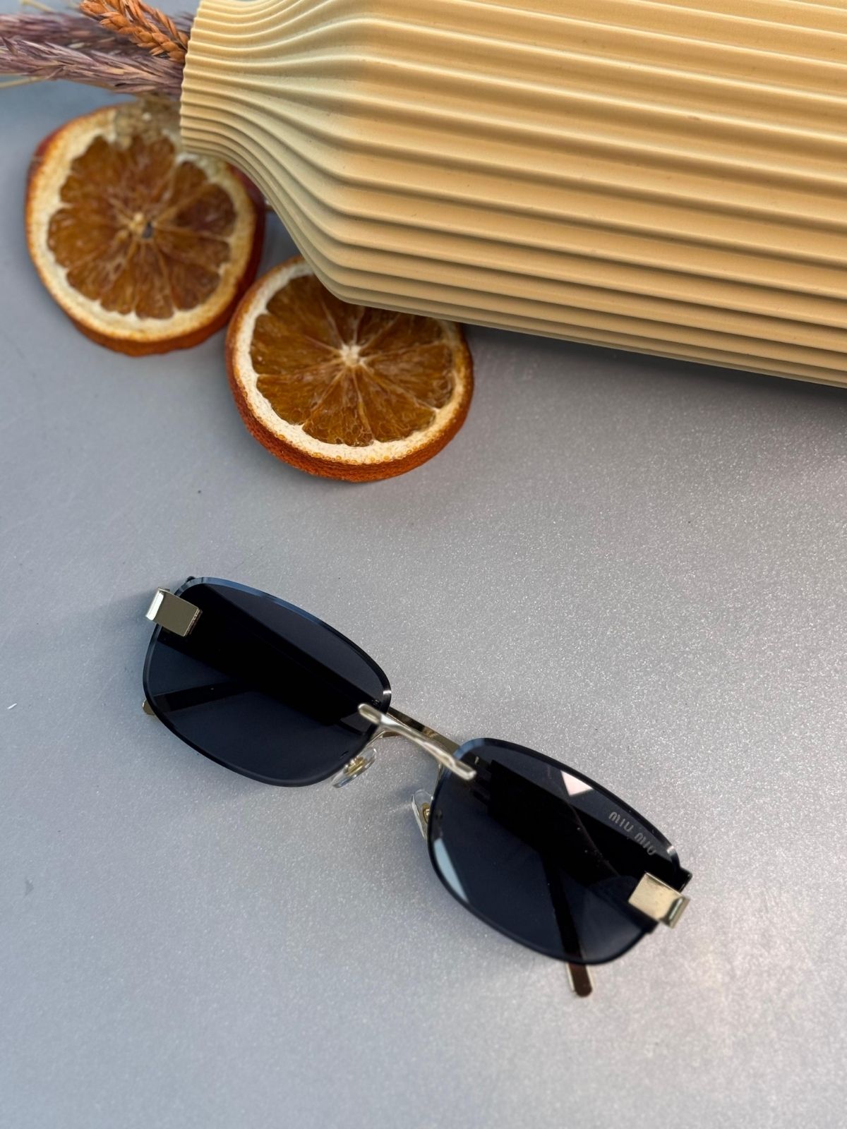 Mıu Mıu Kare Kesik Cam Detaylı Güneş Gözlüğü - Siyah