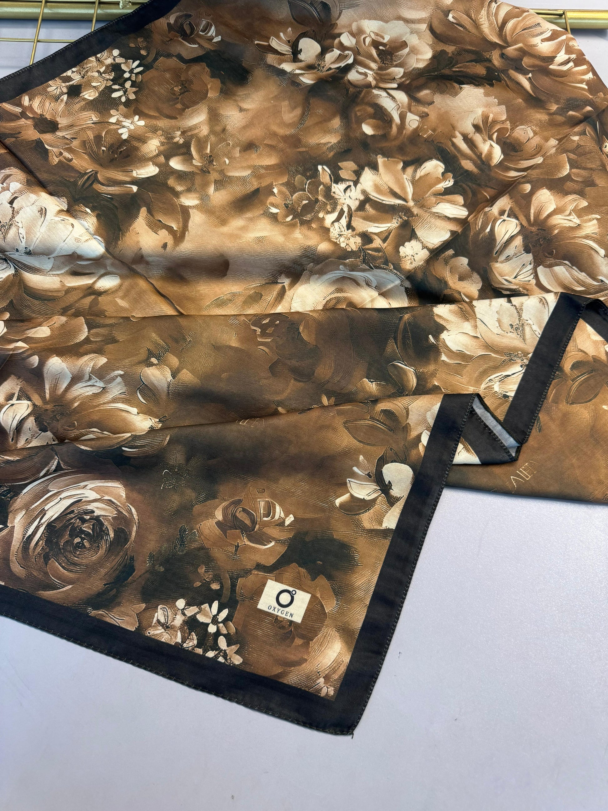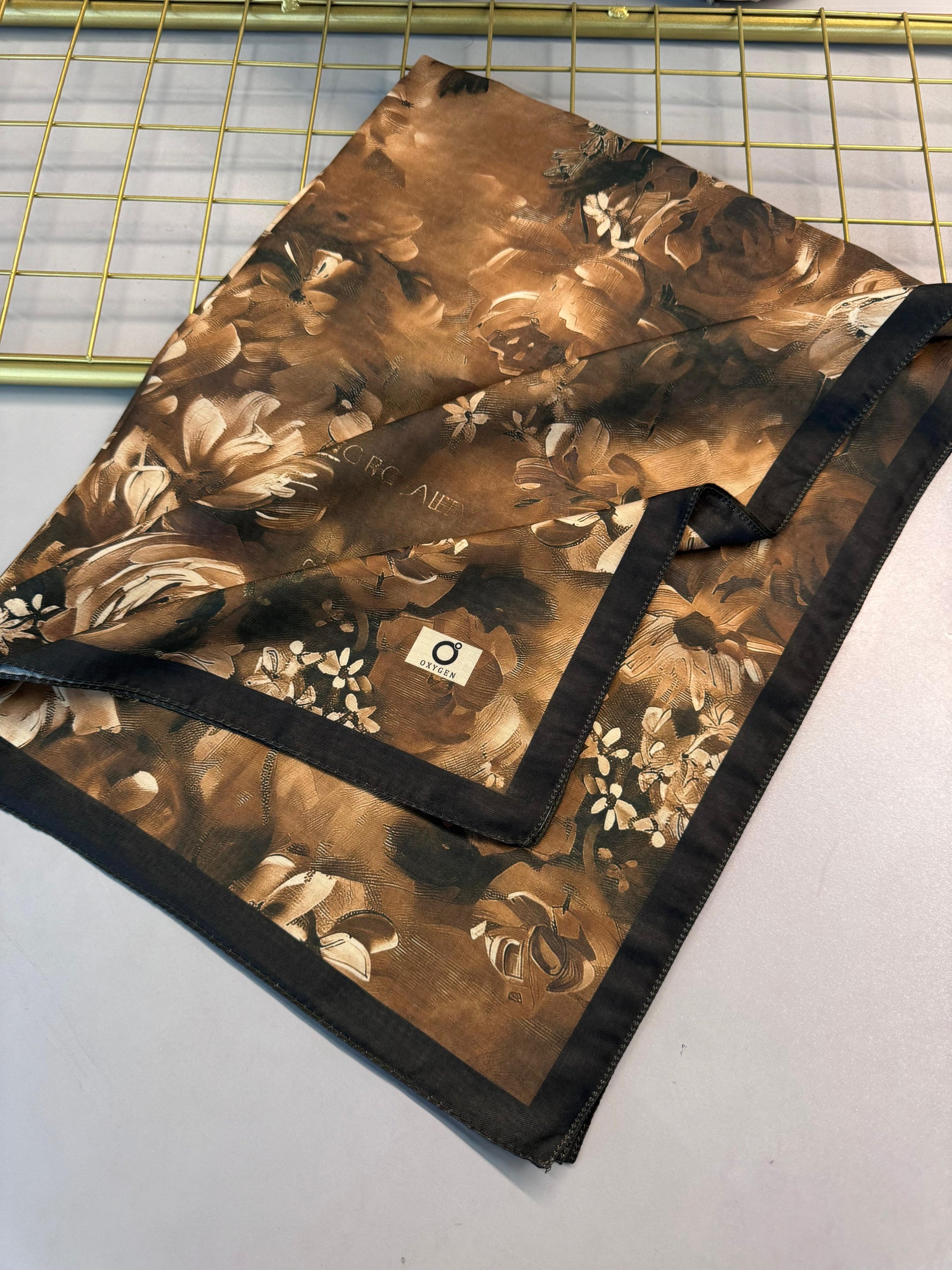Mystic Bloom Desen Pamuk İpek Şal-Karamel