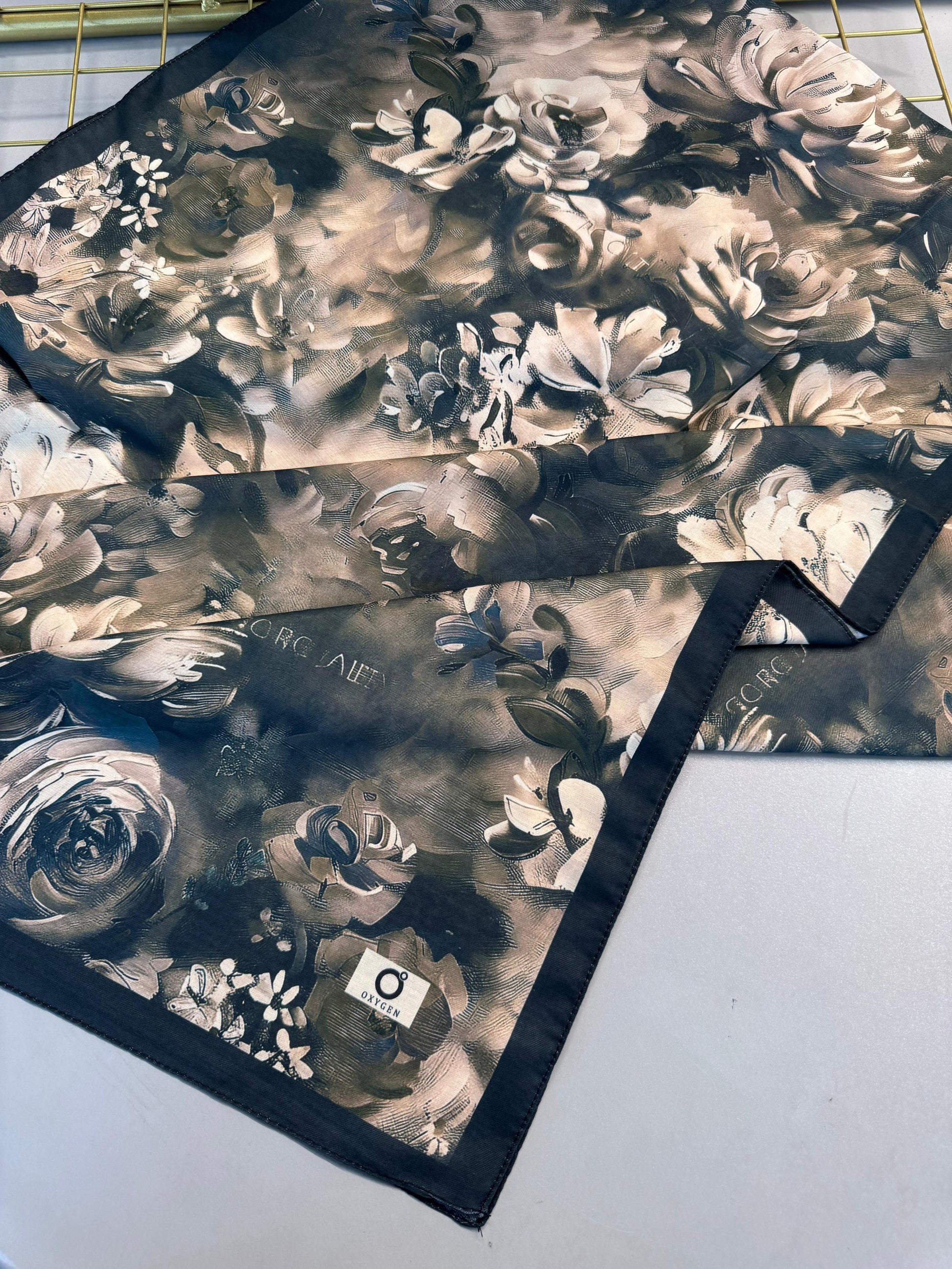 Mystic Bloom Desen Pamuk İpek Şal-Küllü kahve