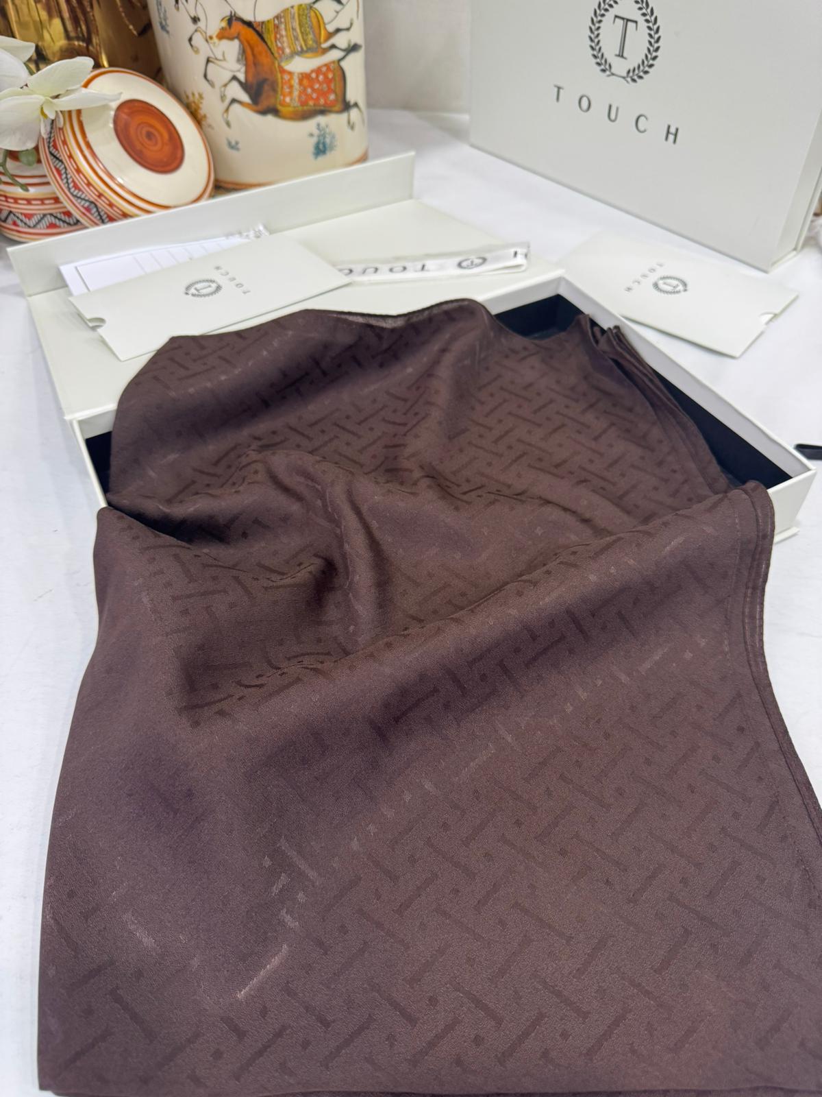 New Desen Pamuk Jakar İpek Şal - 19450 - Kahve