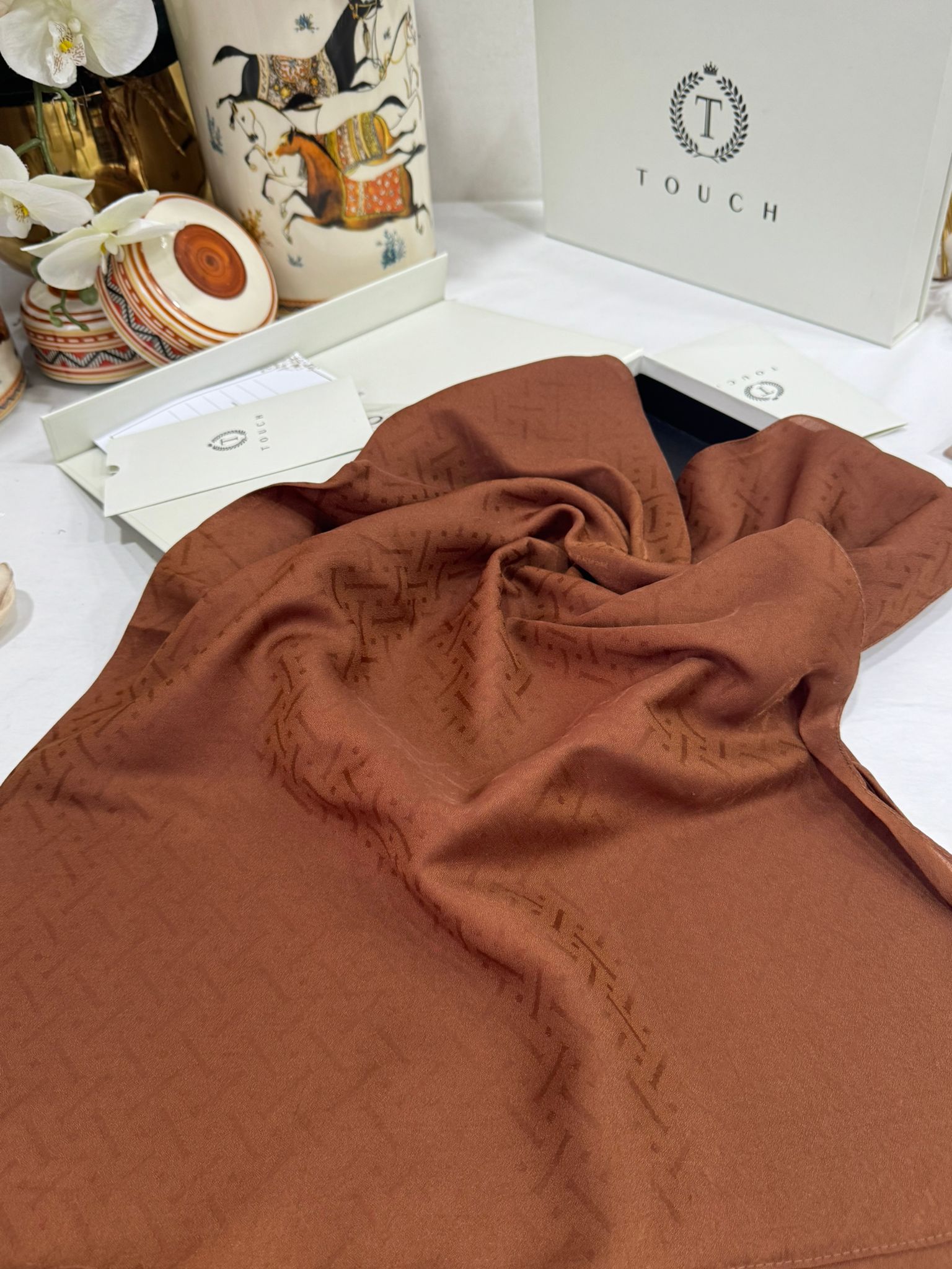New Desen Pamuk Jakar İpek Şal - 19450 - Kızıl kahve