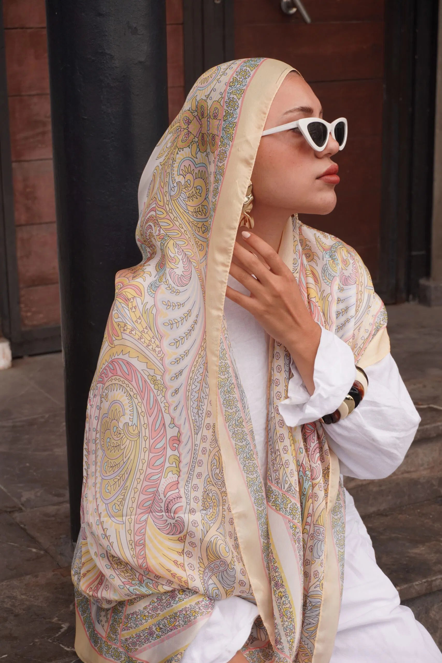 Zarafeti ve şıklığı bir arada sunan bu şal, modern çizgilerle klasik desenlerin mükemmel birleşimini yansıtıyor. Hem günlük hem de özel anlarınızda size sofistike bir dokunuş katacak. %60 floş, %20 ipek ve %20 viskoz karışımından üretilen kumaşı, cildinizdeki yumuşak dokunuşuyla rahatlık sağlarken, zarif tasarımıyla da her kombine şıklık katacak. Hem rahatlık hem de estetik arayanlar için mükemmel bir tercih!